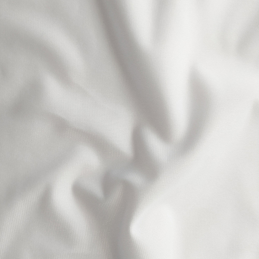 Tejido de poliéster color blanco, con un ancho de 180 cm. Es un tejido con un ligero brillo y un tacto suave en la parte interior. Es ideal para conjuntos deportivos (chandal). Rendimiento de 4,95 m²/kg. Especial sublimacion y acepta serigrafía , transfer y otros reprocesos.