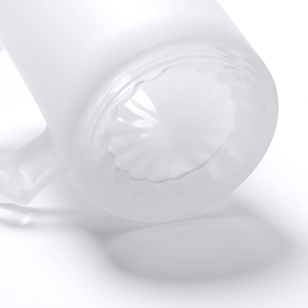 Jarra de cristal efecto hielo especial para personalizarla con la técnica de sublimación. Capacidad de 500 ml. Una jarra que se adapta a cualquier negocio.