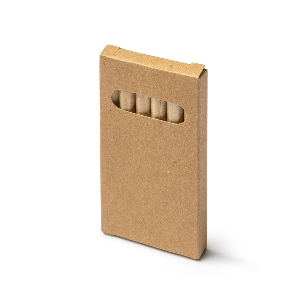 Set de 6 lápices de madera en caja de cartón reciclado.