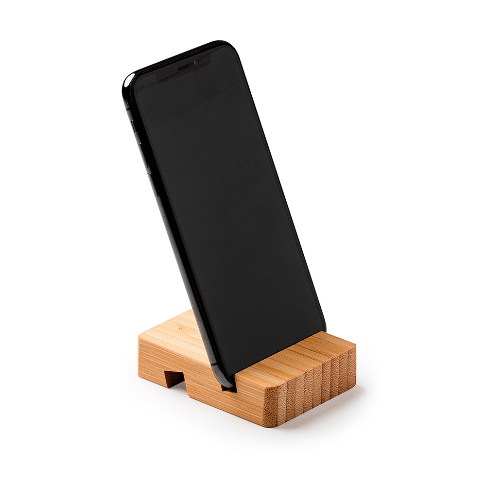Soporte para dispositivos móviles, tablet o smartphone, realizado en bambú.