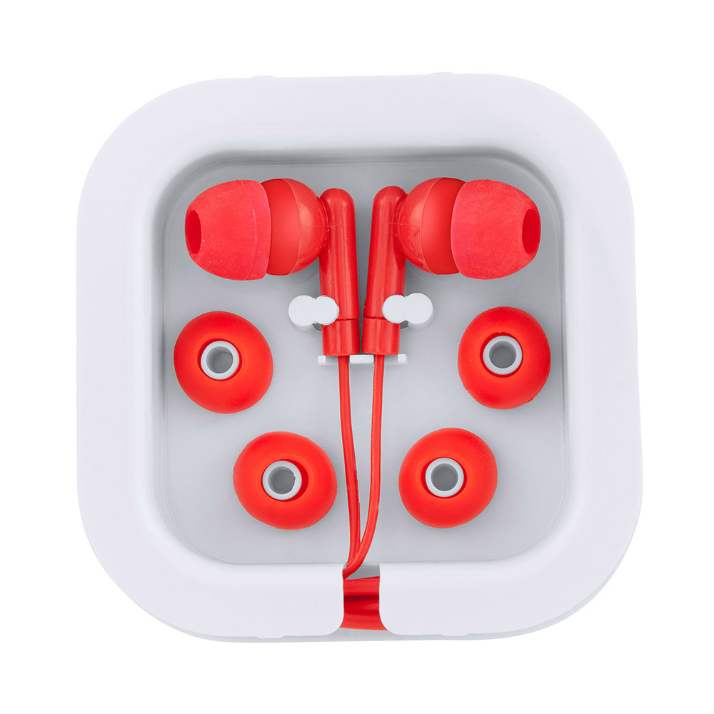 Auriculares presentados en estuche de PS. Conexión Jack 3,5 mm. Cable con botón de seguridad incluido. Incluye 3 pares de fundas de diferentes medidas.