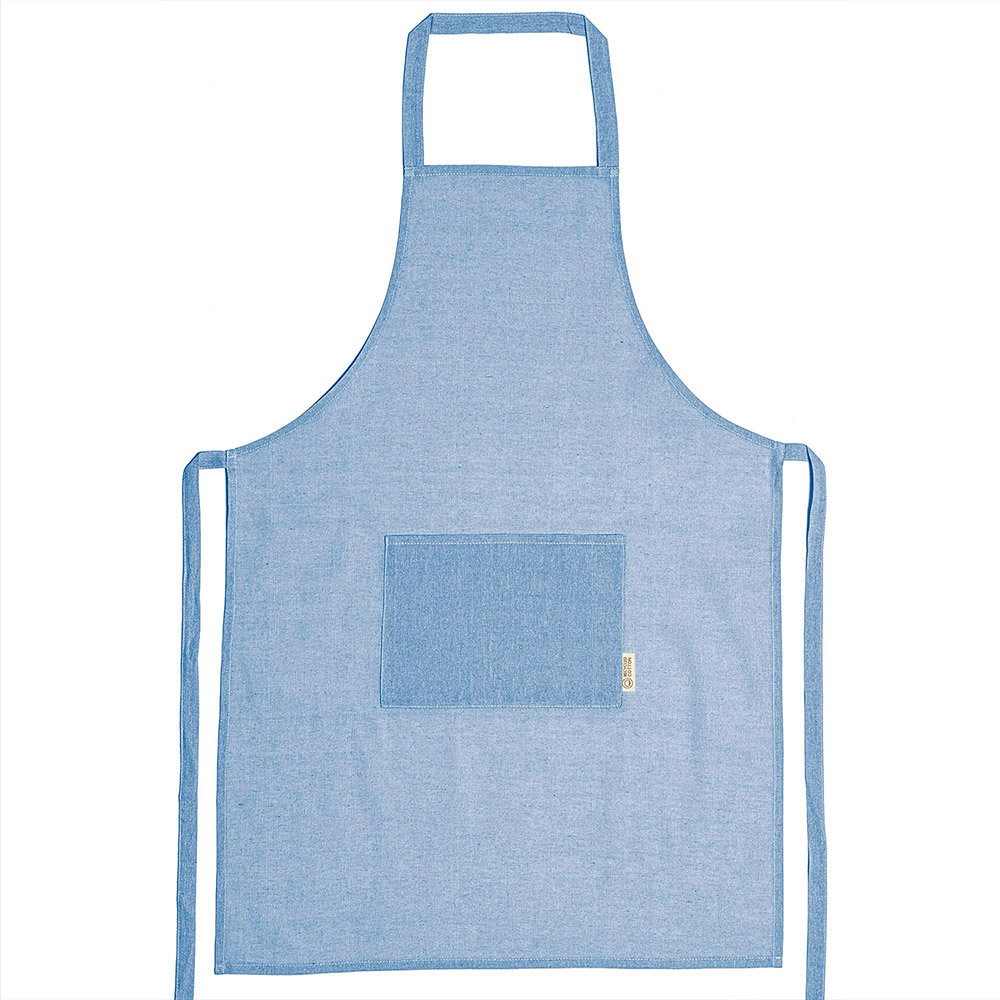 Delantal realizado en algodón reciclado con acabado jaspeado. Bolsillo frontal. Talla única ajustable.
