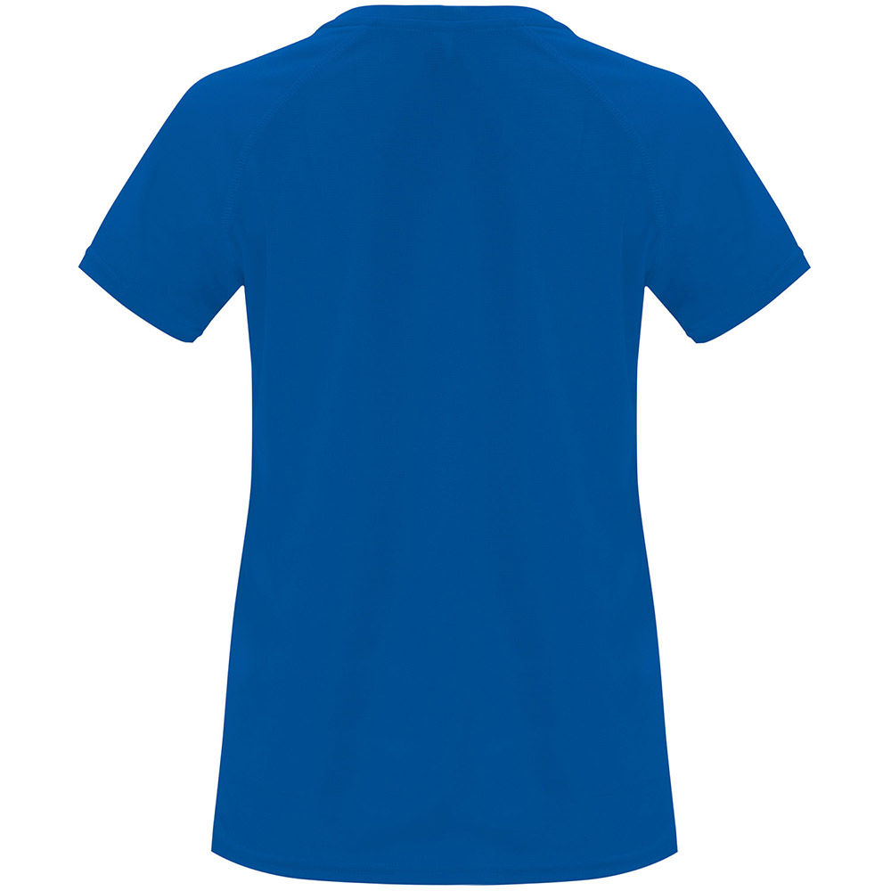 Camiseta técnica entallada de manga corta ranglán para mujer, con cuello redondo y cubrecosturas a tono. Paneles inferiores en mangas. Remallado a tono en sisa y panel de manga. Tejido CONTROL DRY.