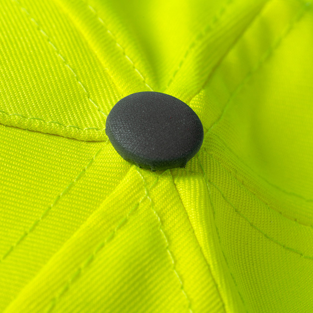 Gorra de 5 paneles 100% poliéster con detalles reflectantes. Cierre de velcro ajustable y orificios de ventilación.