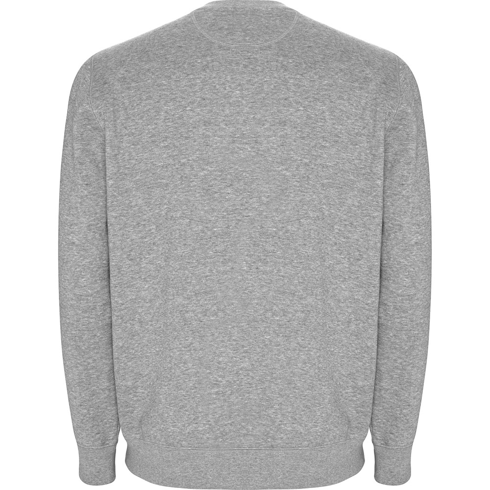 Sudadera Unisex en Algodón Orgánico Peinado y Poliéster Reciclado. Cuello, puños y cinturilla de punto canalé 2×1. Adorno de costuras remalladas en hombro, sisa, cuello, puños y cintura. Media luna en el interior del cuello trasero.