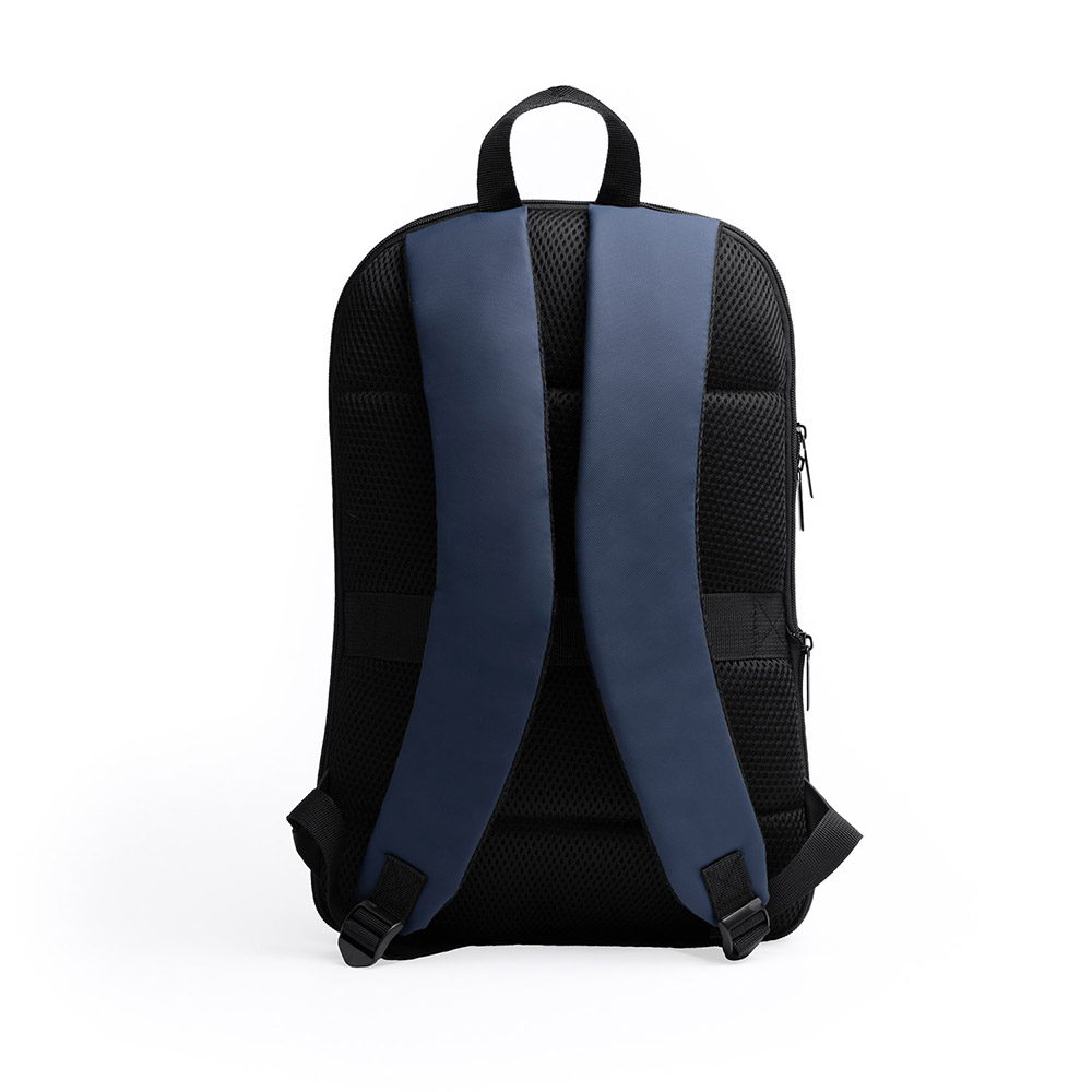 Mochila realziada en PU Leather con un compartimento principal y bolsillo interior acolchado para portátil de 17″. Incluye dos bolsillos exteriores con cierre de cremallera, uno frontal y otro lateral. El lateral extensible está hecho de poliéster reciclado RPET. Dispone de cinta para fijar a trolley, proporcionando comodidad en viajes. Con una capacidad de 15 litros.