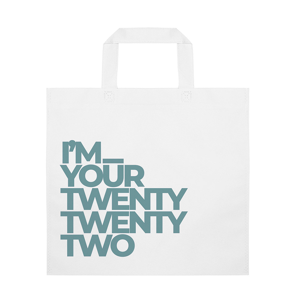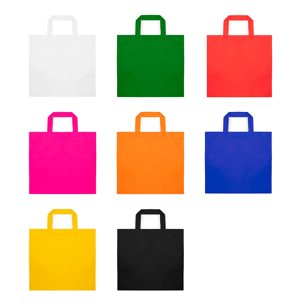 Bolsa de non-woven de 80 g/m². Asas cortas reforzadas de 35 cm y acabado termosellado.