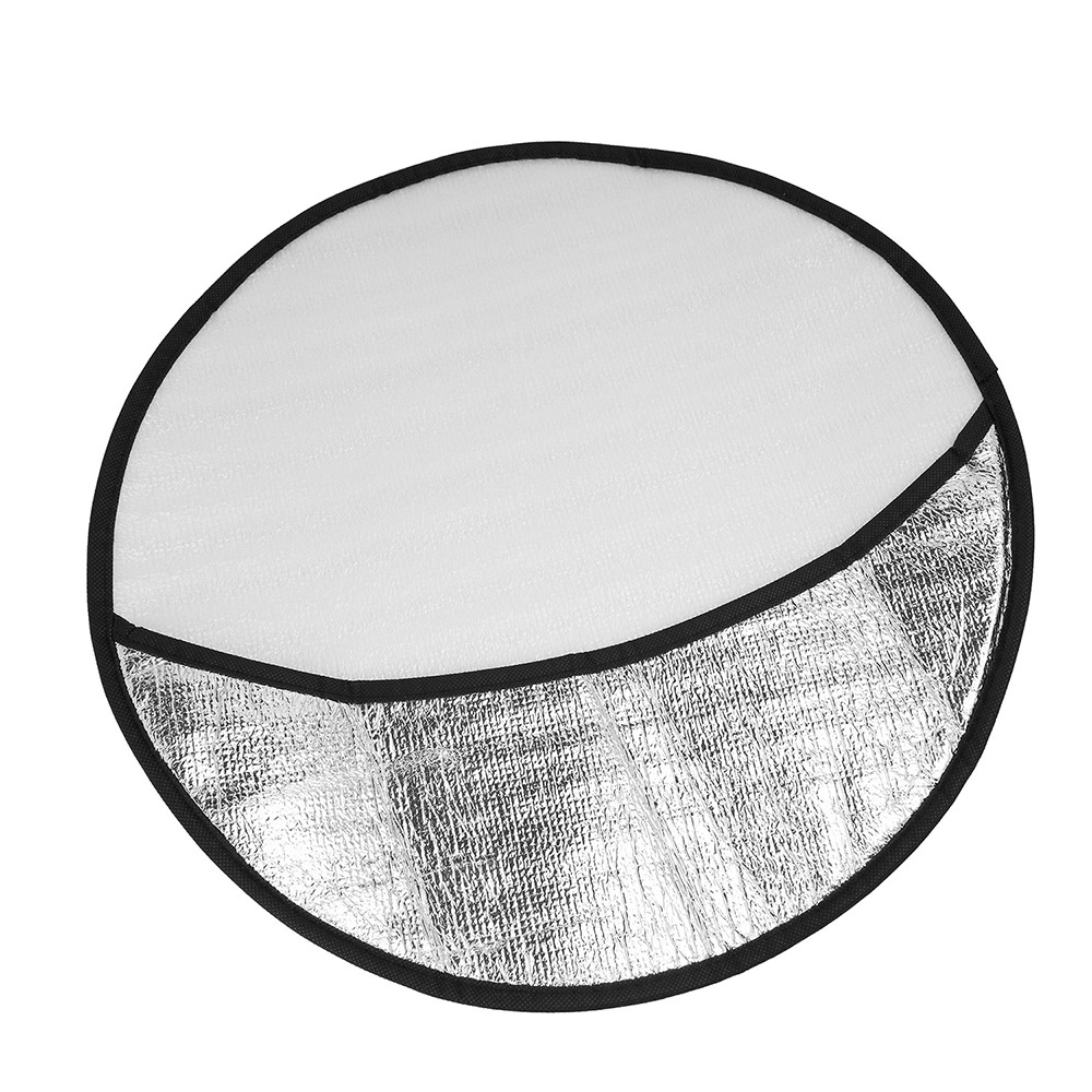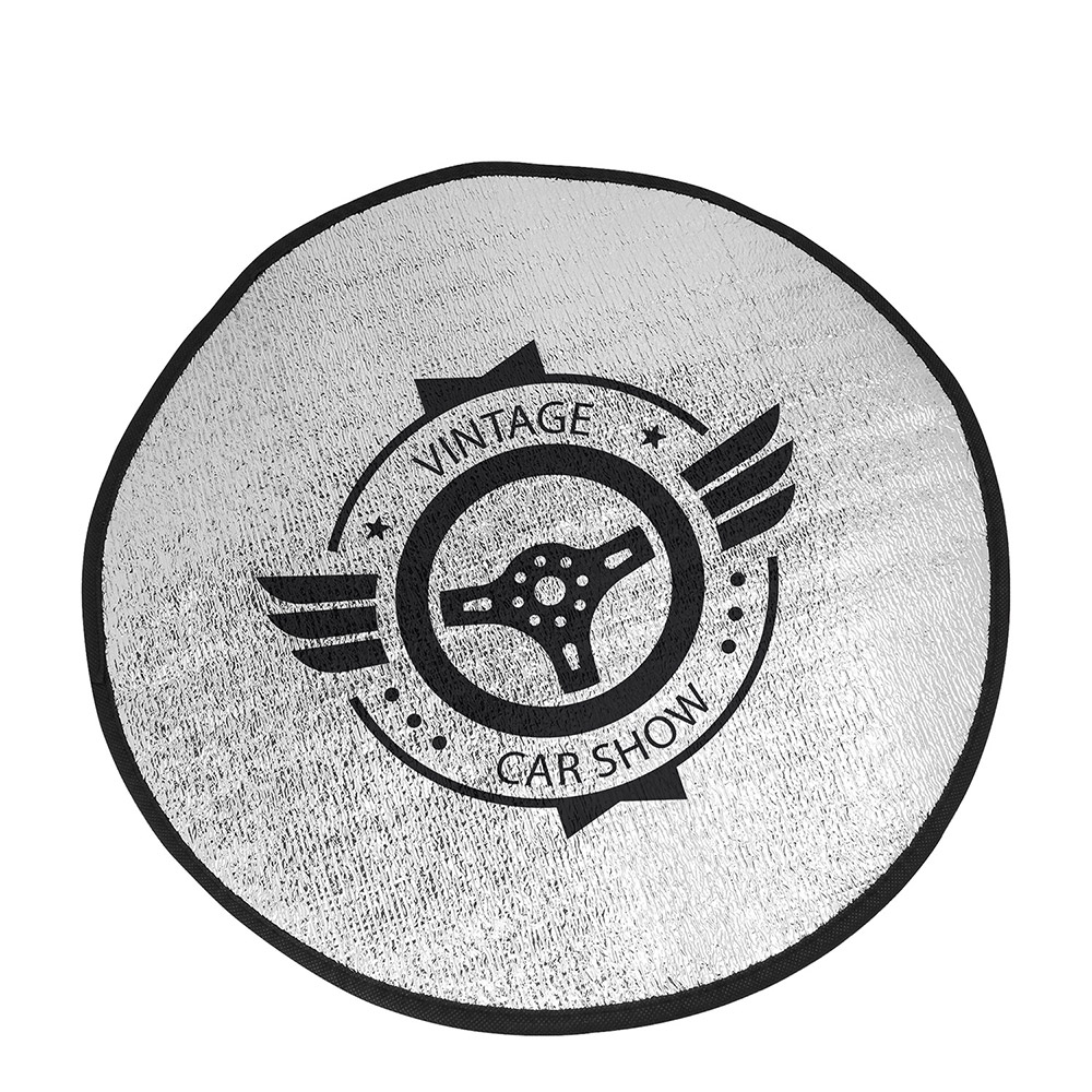 Cubre volante redondo con capa frontal de aluminio y parte trasera de espuma blanca. Ribete en color negro.