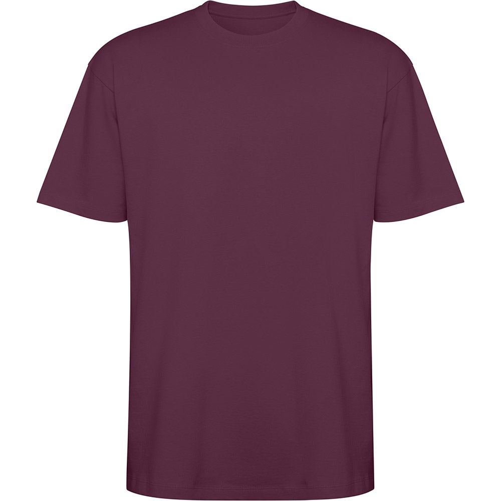 Camiseta de manga corta estilo oversize. Cuello redondo ribeteado en canalé 2×1 con cubre costuras a tono. Costuras laterales. Doble costura ancha en manga y bajo.