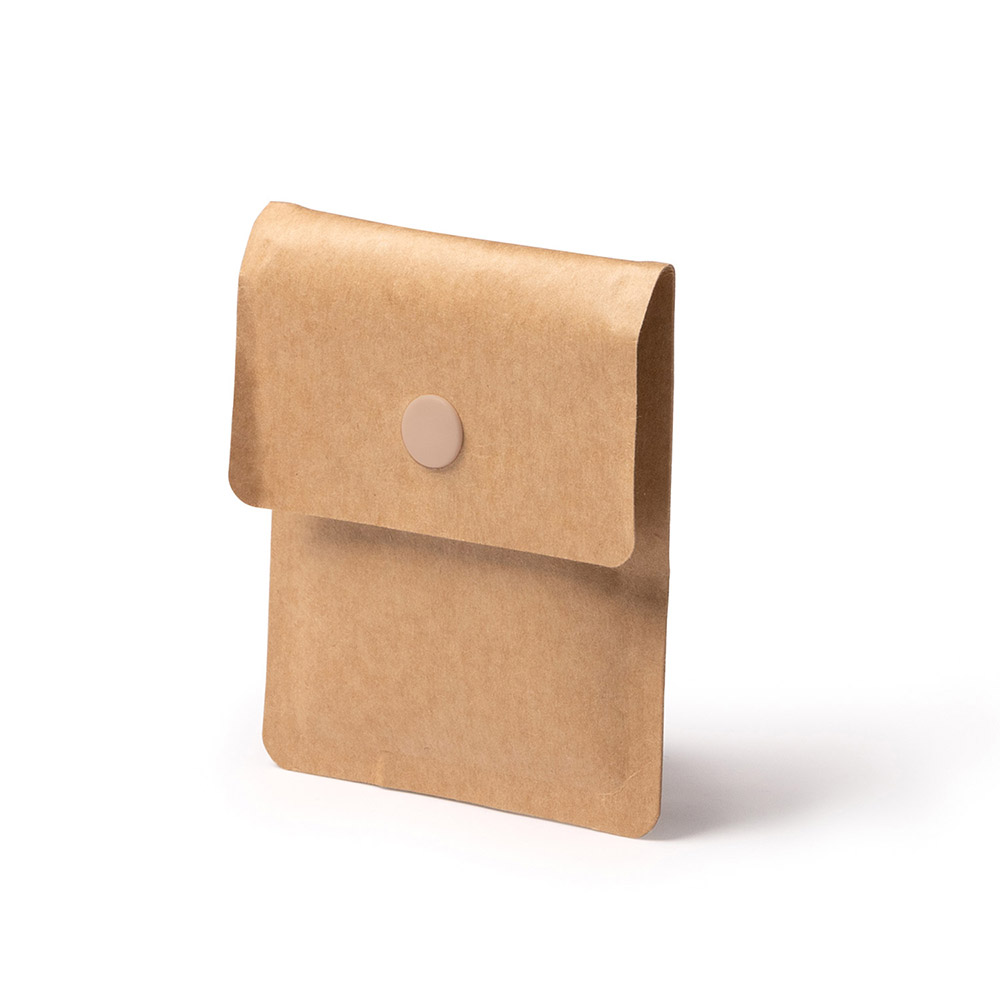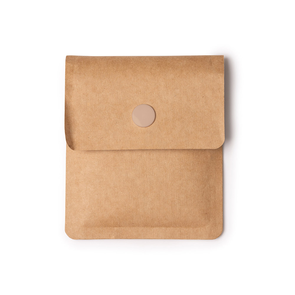 Cenicero de papel reciclado e interior de aluminio ignífugo. Cierre de seguridad con botón.