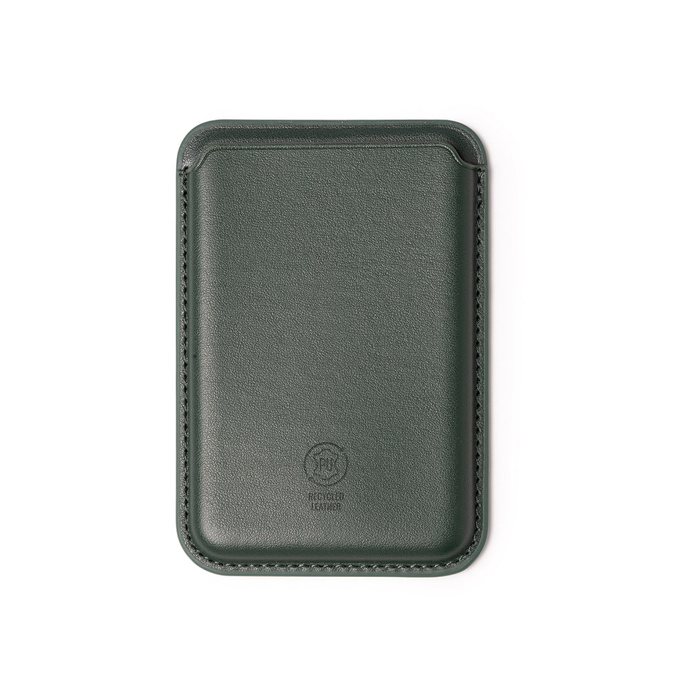 Tarjetero magnético realizado en PU reciclado. Anillo adhesivo adicional incluido.