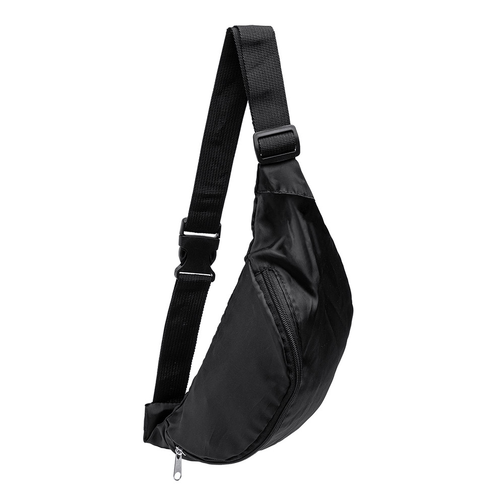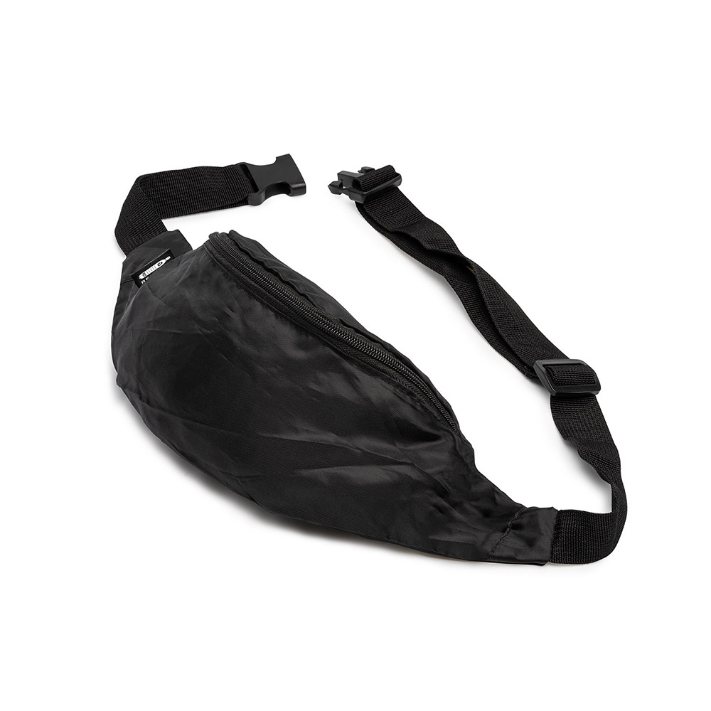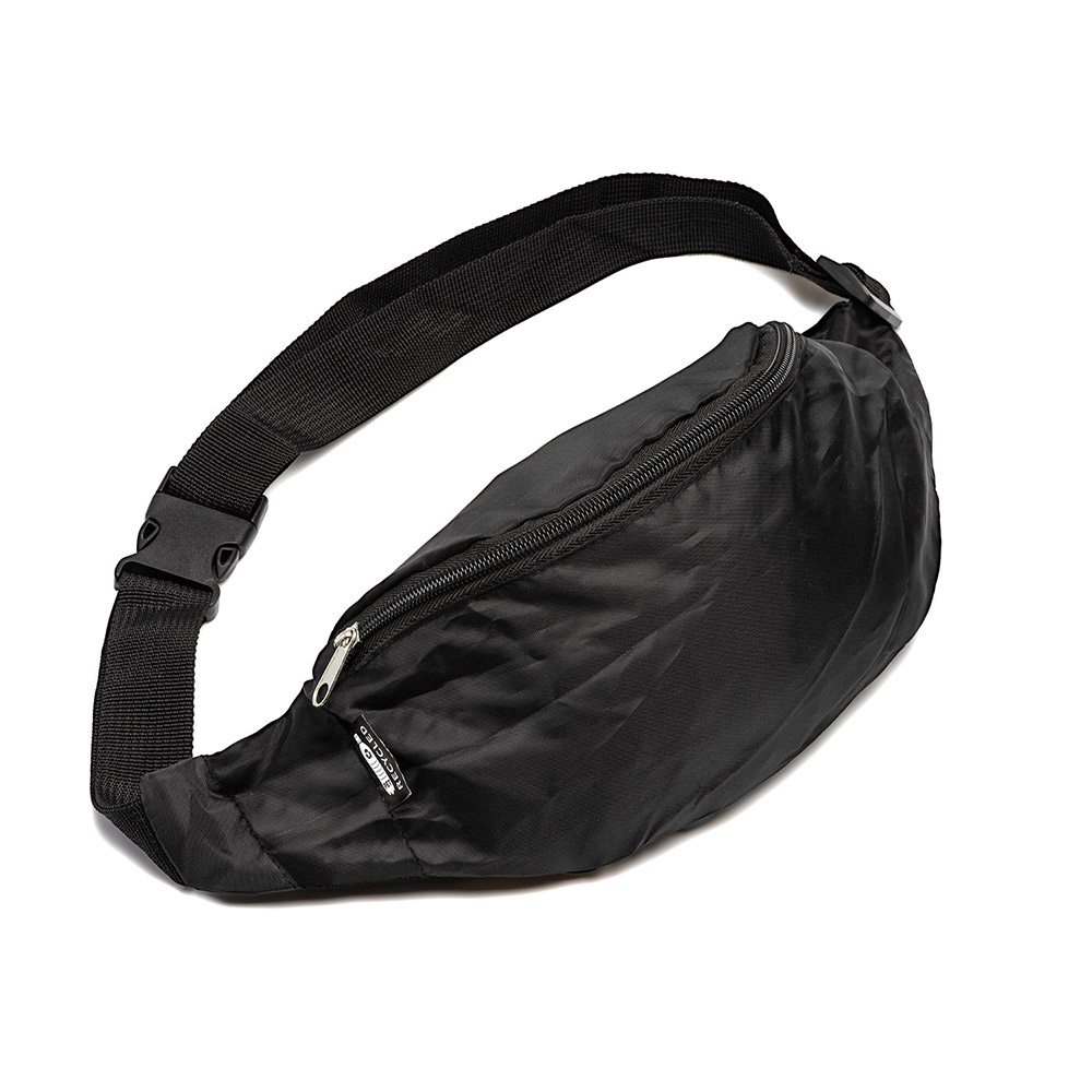 Riñonera de uso diario realizada en RPET 210D con compartimento principal y cierre de cremallera.