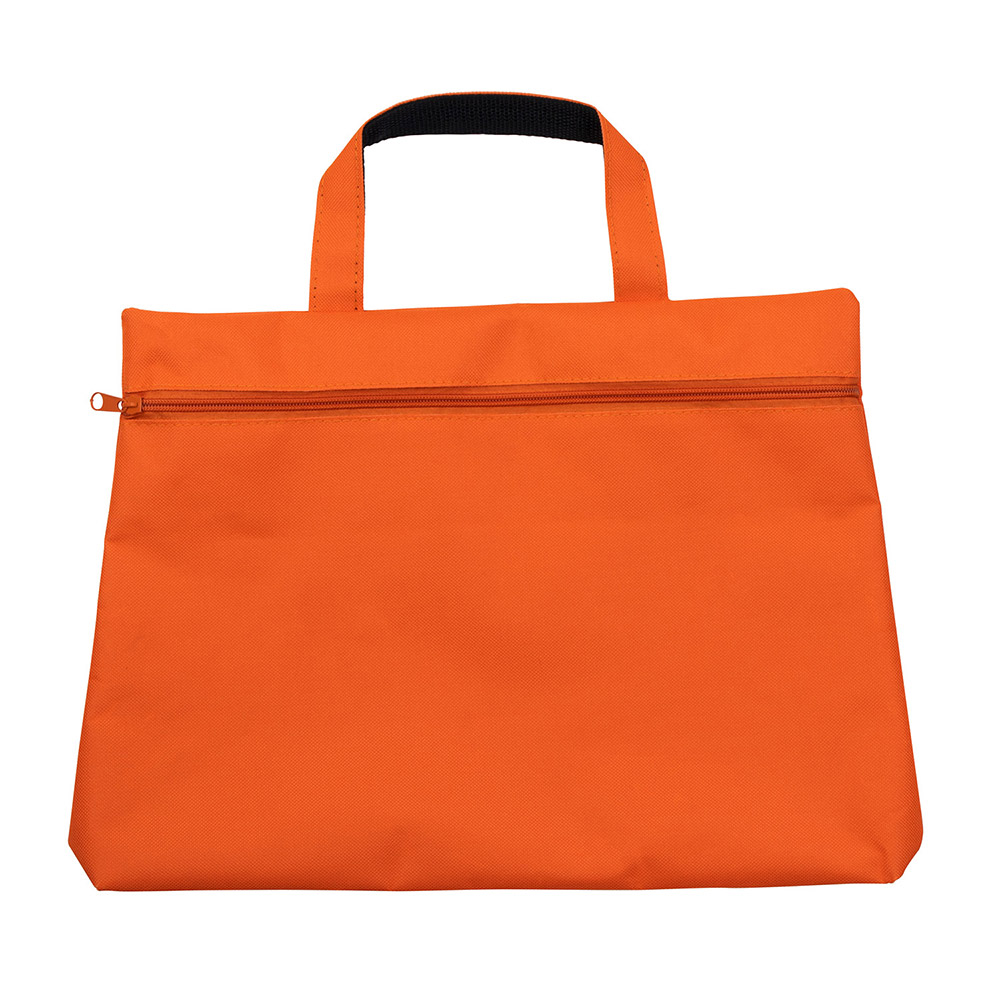 Portadocumentos de poliéster 600D en varios colores con asa de transporte y cremallera a juego.