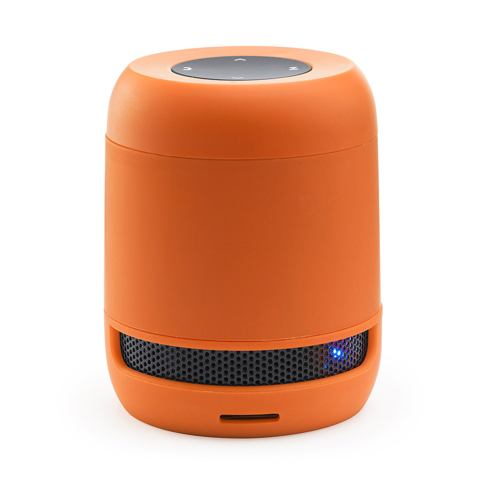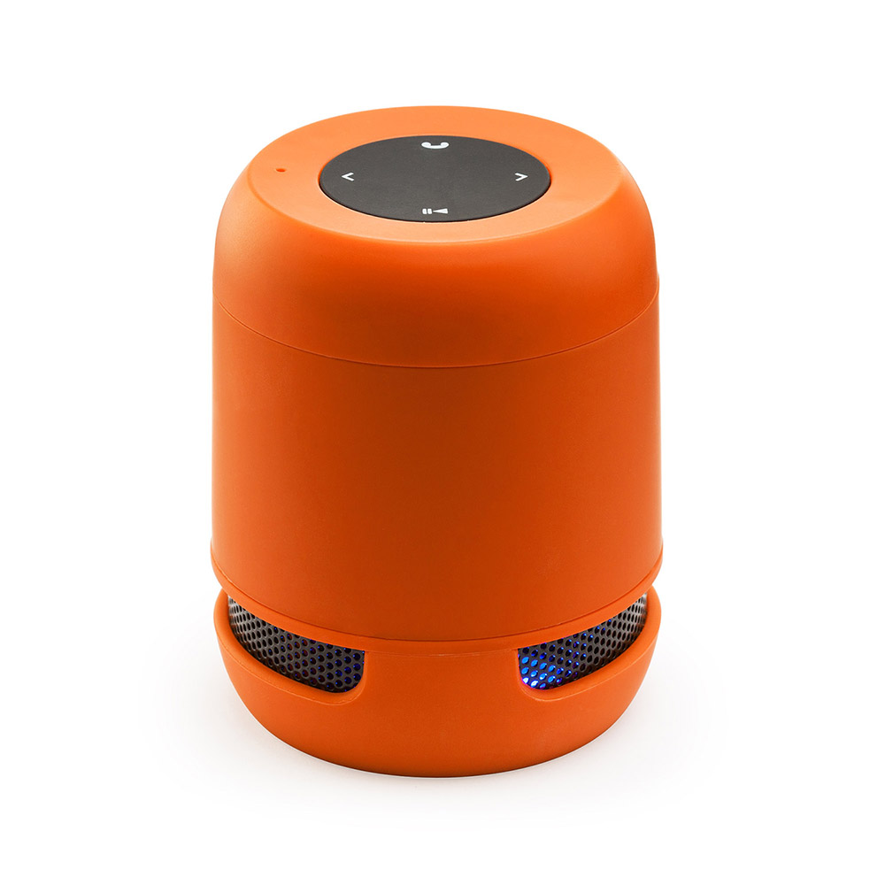Fantástico altavoz inalámbrico de ABS con acabado en tacto suave. Bluetooth 3.0 y 3W de potencia. Función manos libres. Batería recargable. Cable incluido.