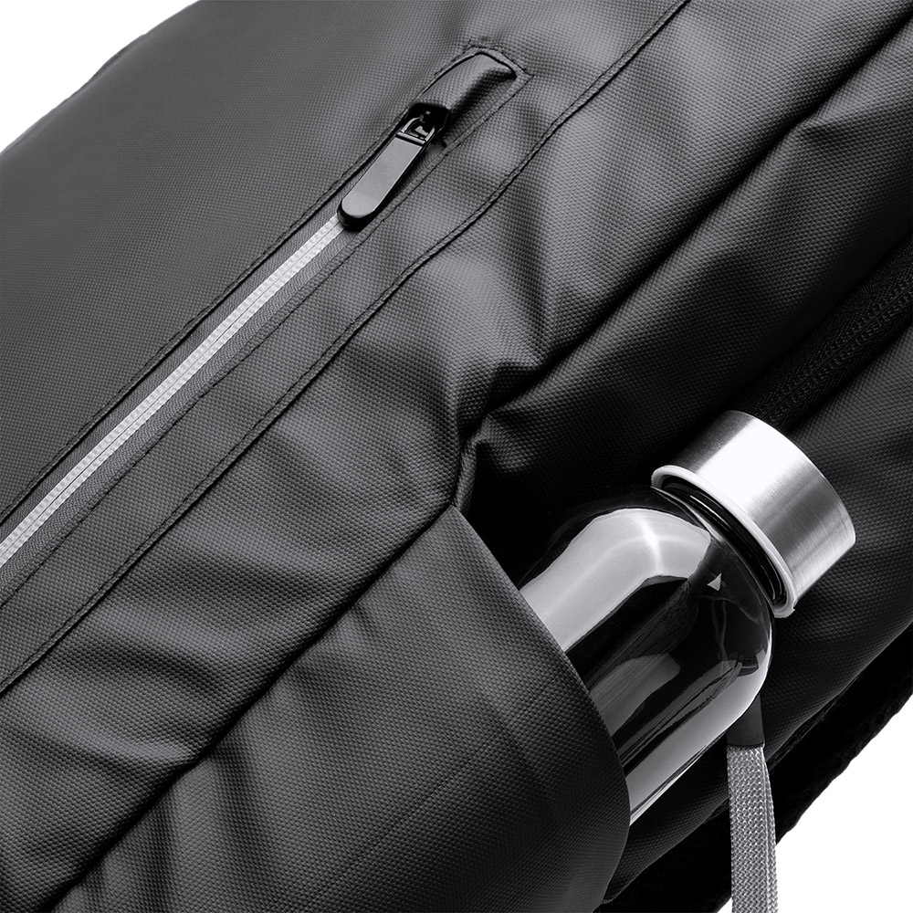 El cuerpo y el bolsillo interior acolchados de la mochila están diseñados para ofrecer una protección óptima a tu portátil de 13″ o tablet, manteniéndolos seguros y libres de arañazos durante tus desplazamientos. Además, cuenta con un bolsillo exterior con cremallera impermeable y una banda reflectante, lo que añade un elemento de seguridad adicional y protección contra la lluvia.