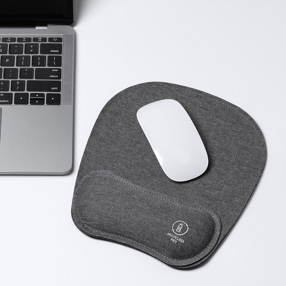 Alfombrilla elaborada con material RPET y con almohadilla, es una opción eco-amigable y cómoda para el uso con el ratón de tu PC o portátil.