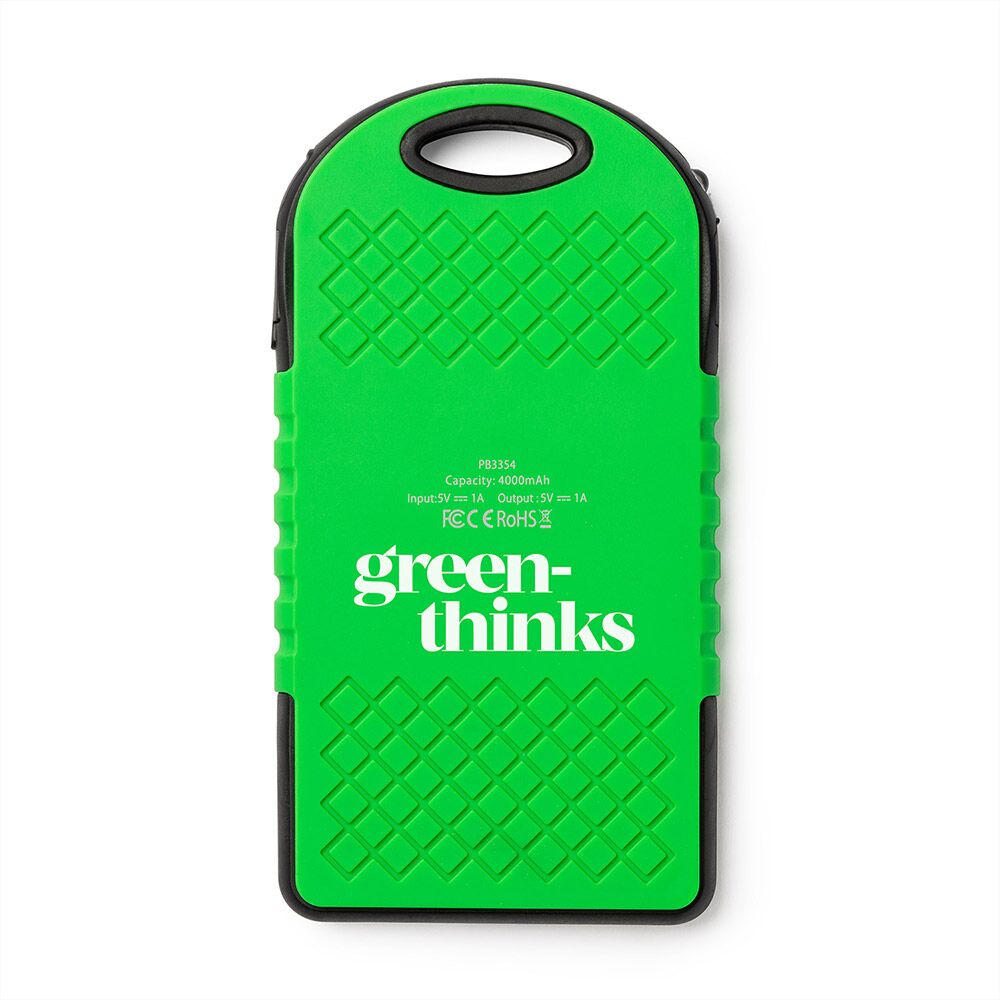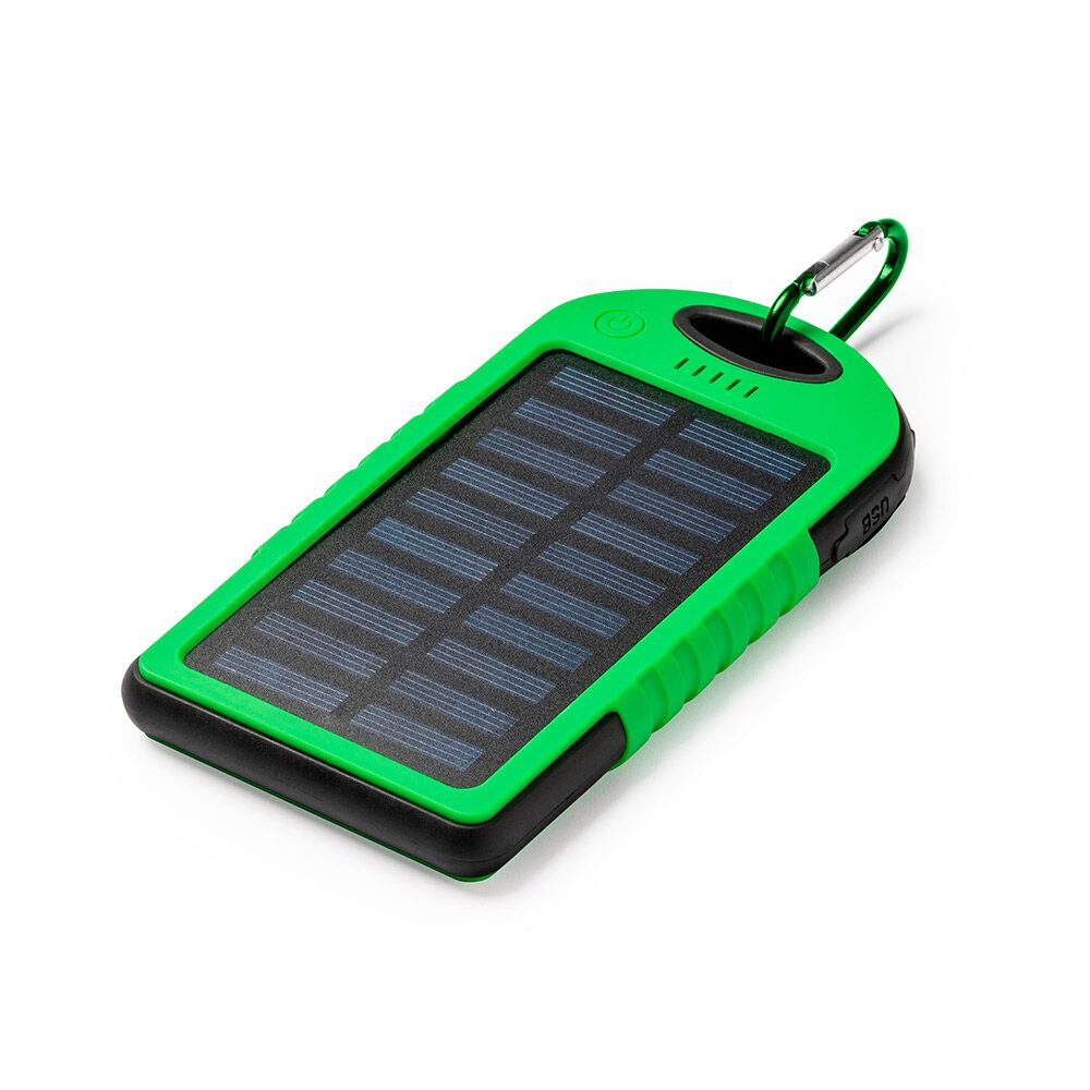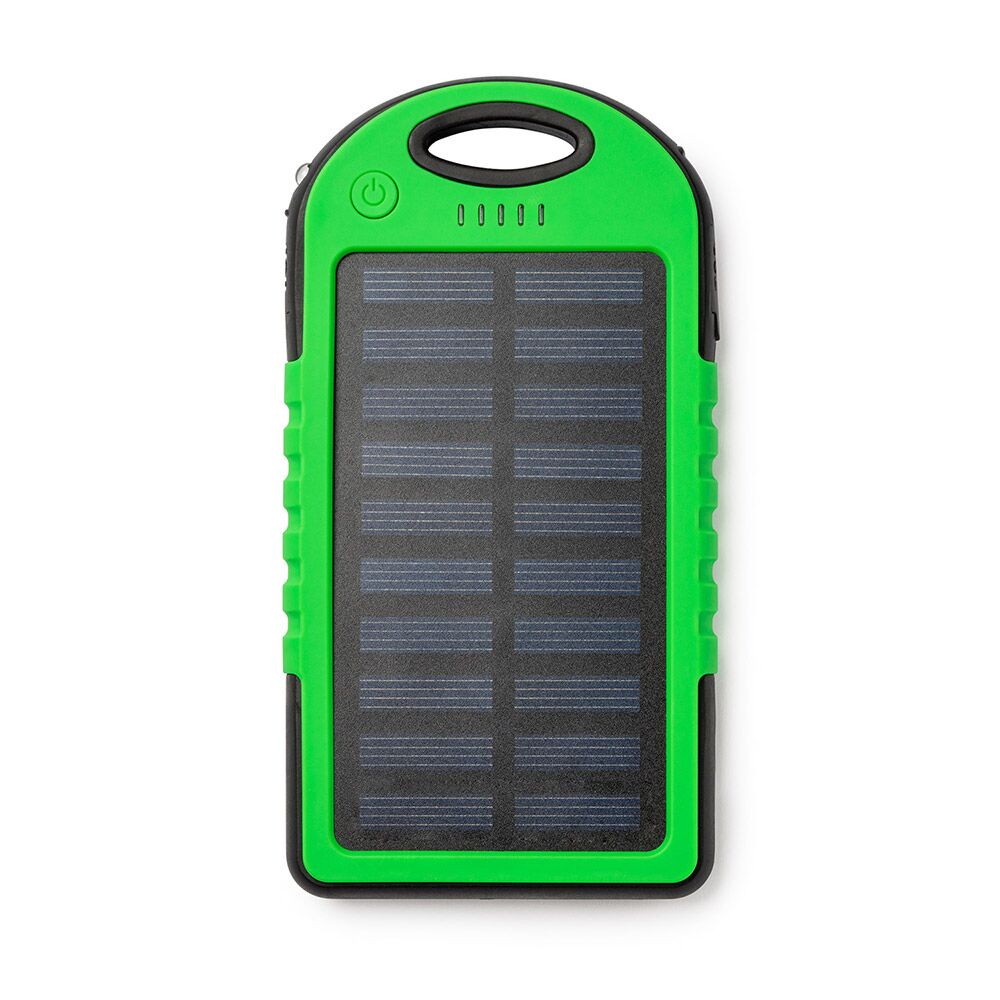 Batería externa solar, resistente a salpicaduras de agua y con gran capacidad de carga. 4000 mAh. Indicador de carga LED y luz. Salida de corriente 5W/2.1A.
