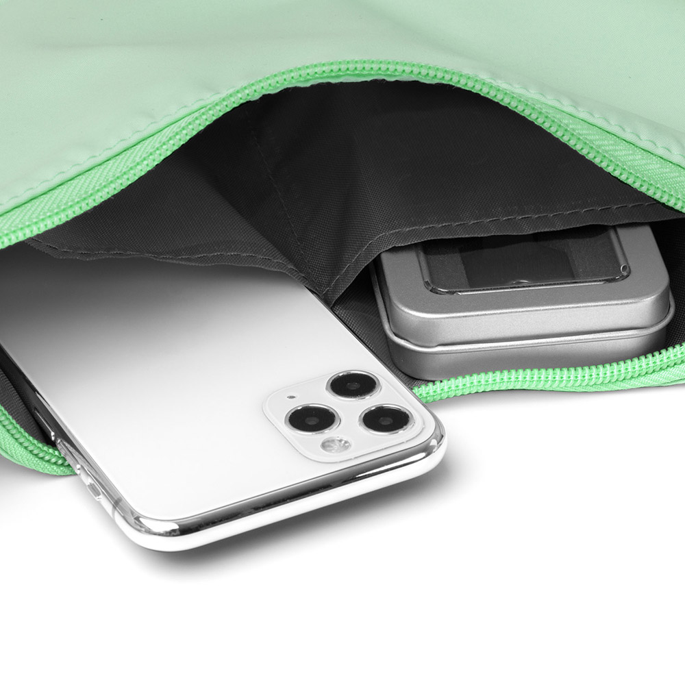 Bolso – bandolera realizado de nylon reciclado repelente al agua, con compartimento principal espacioso y dos bolsillos interiores para una mejor organización. Ideal para el uso diario, combina estilo y sostenibilidad y una opción práctica para llevar tus pertenencias de manera segura y ordenada.
