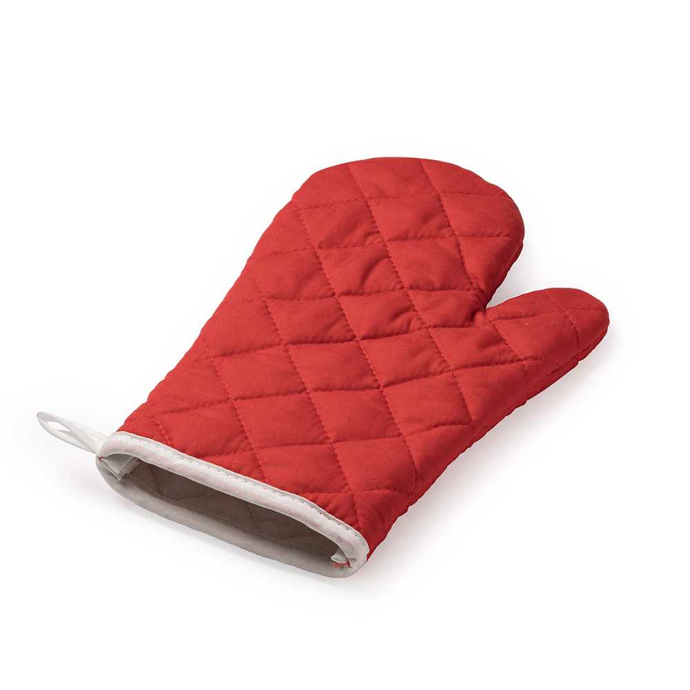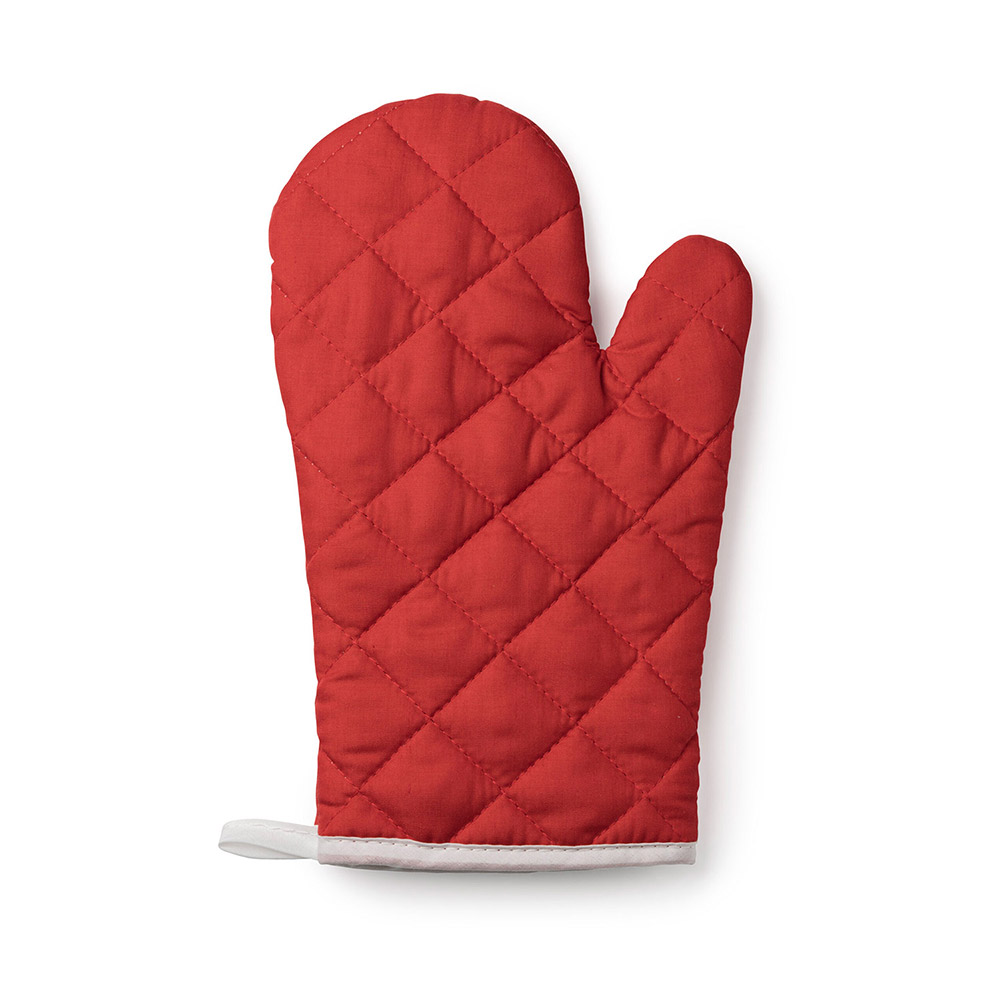 Set de cocina compuesto por agarrador y manopla en suave algodón/poliéster. Una cara lisa ideal para marcaje y cinta para colgar. Disponible en varios colores.
