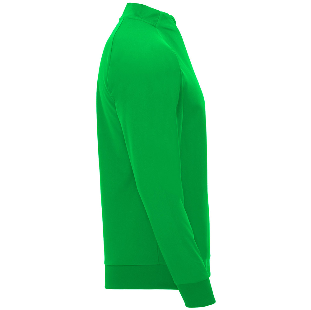 Sudadera de manga ranglán, con Interior perchado, cuello con media cremallera y cubrecosturas de refuerzo en su interior a tono. Parte posterior del cuello, puños y bajo en canalé 1×1.