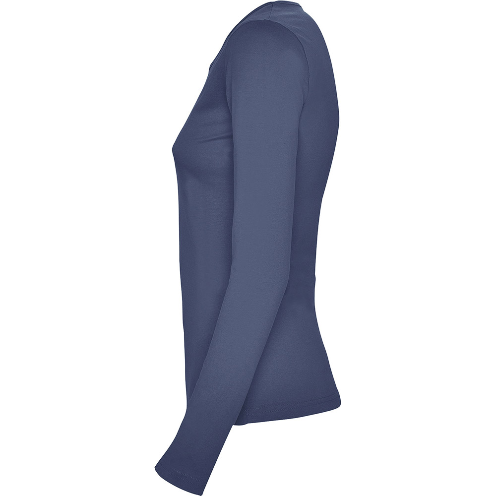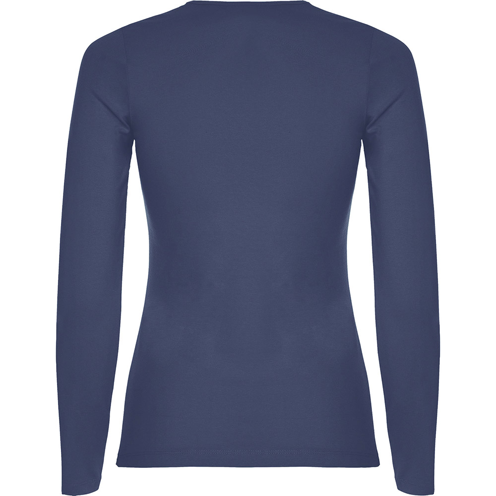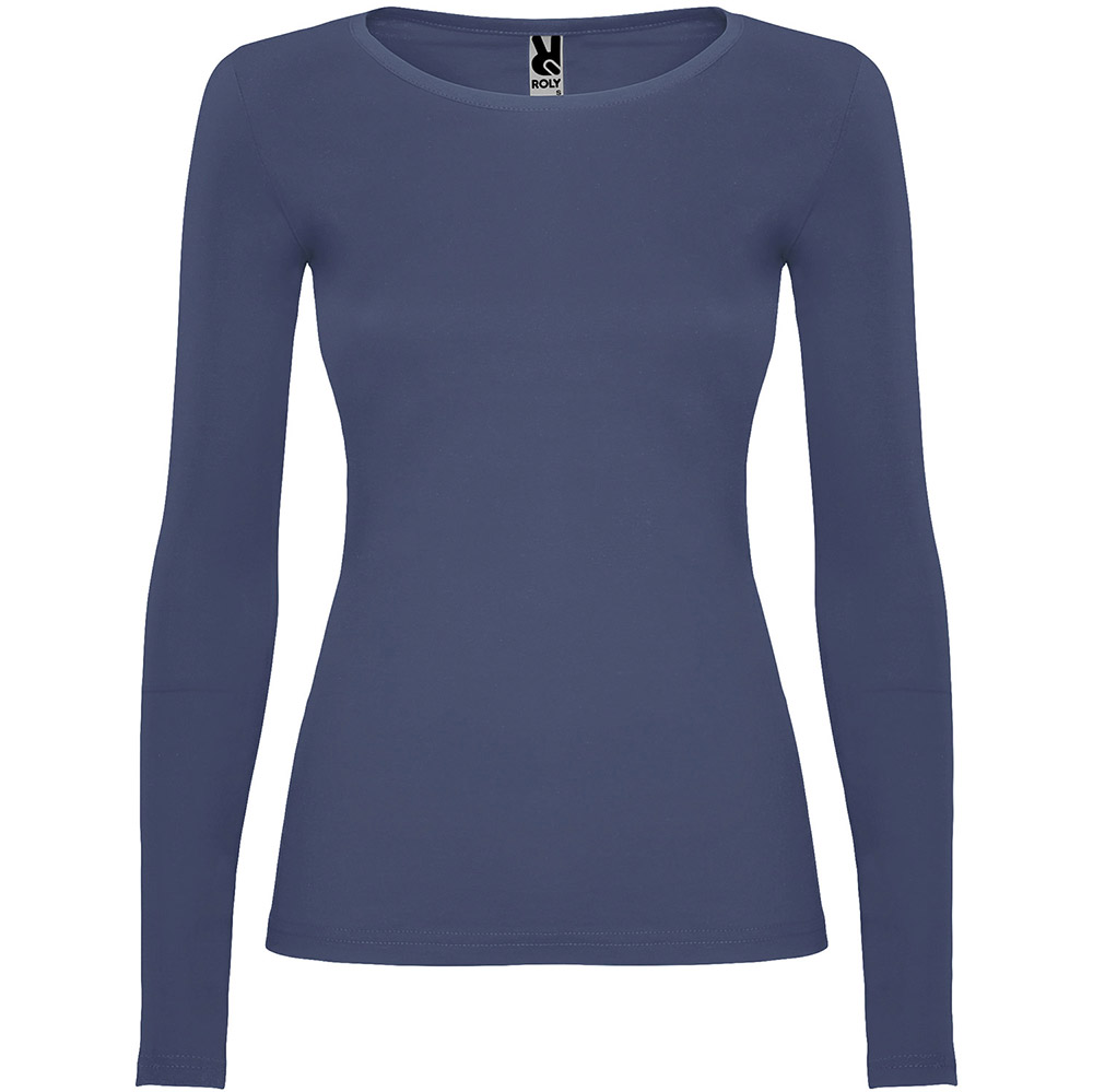Camiseta semientallada, de manga larga y cuello acabado con ribete fino. Sin puños. Costuras laterales.