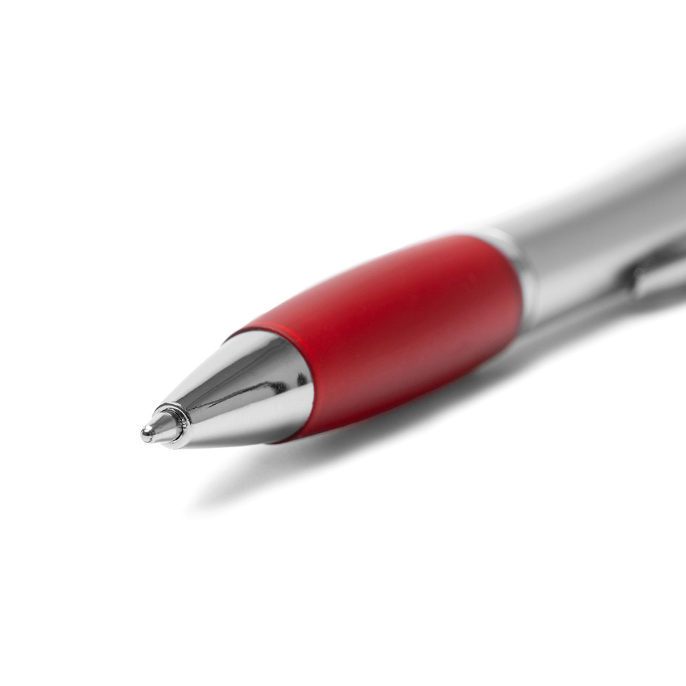 Bolígrafo giratorio con spinner antiestrés. Cuerpo en ABS y clip metálico. Cómoda empuñadura a color. Puntero táctil y acabado metalizado. Tinta azul.