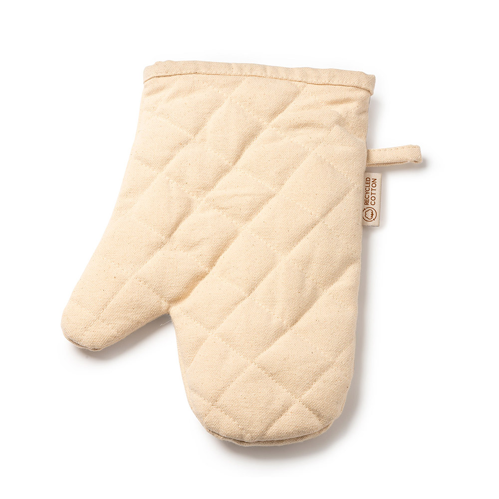 Manopla 100% de algodón reciclado. Una cara lisa ideal para marcaje y cinta para colgar. Una manopla ecológica concienciada con el medioambiente, que está