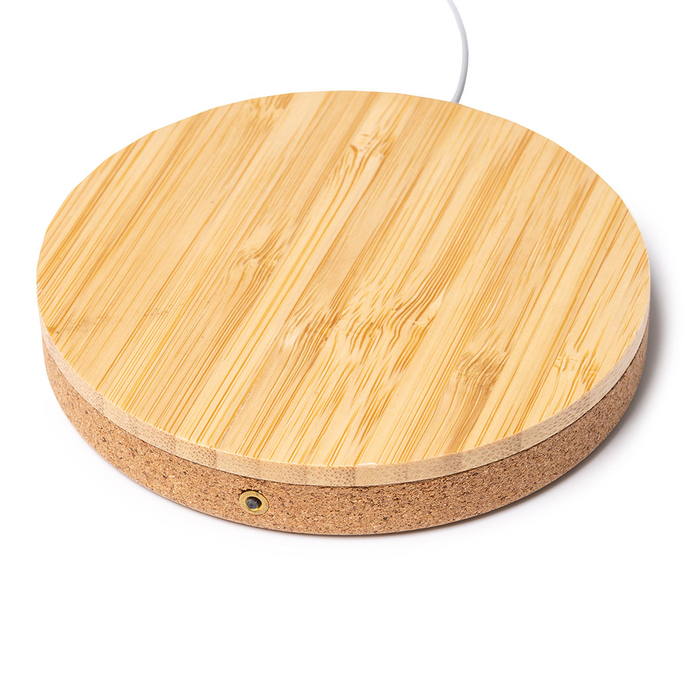 El cargador inalámbrico con cuerpo combinado de corcho y bambú es una opción sostenible y práctica para cargar tus dispositivos de forma inalámbrica. Con un diseño compacto, es ideal para llevarlo contigo a cualquier lugar, ya sea en tu oficina, en casa o mientras viajas.