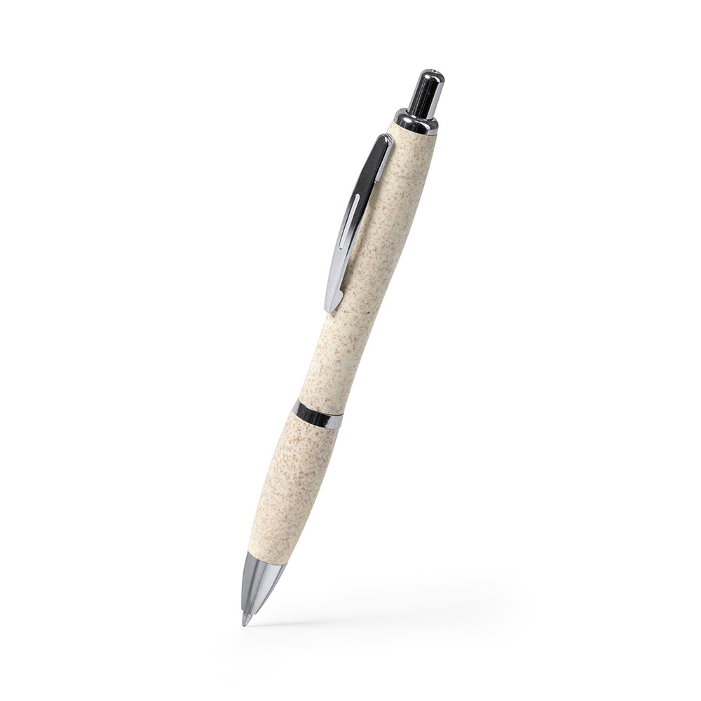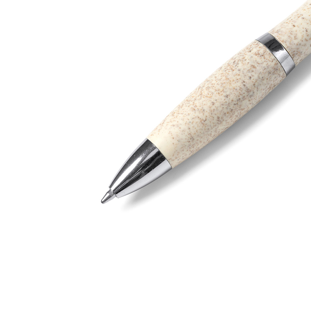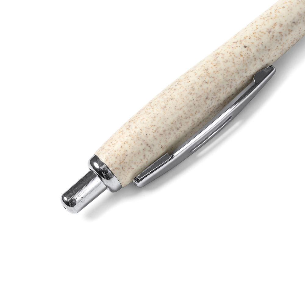 Bolígrafo con pulsador de fibra de trigo y ABS. Tinta azul.