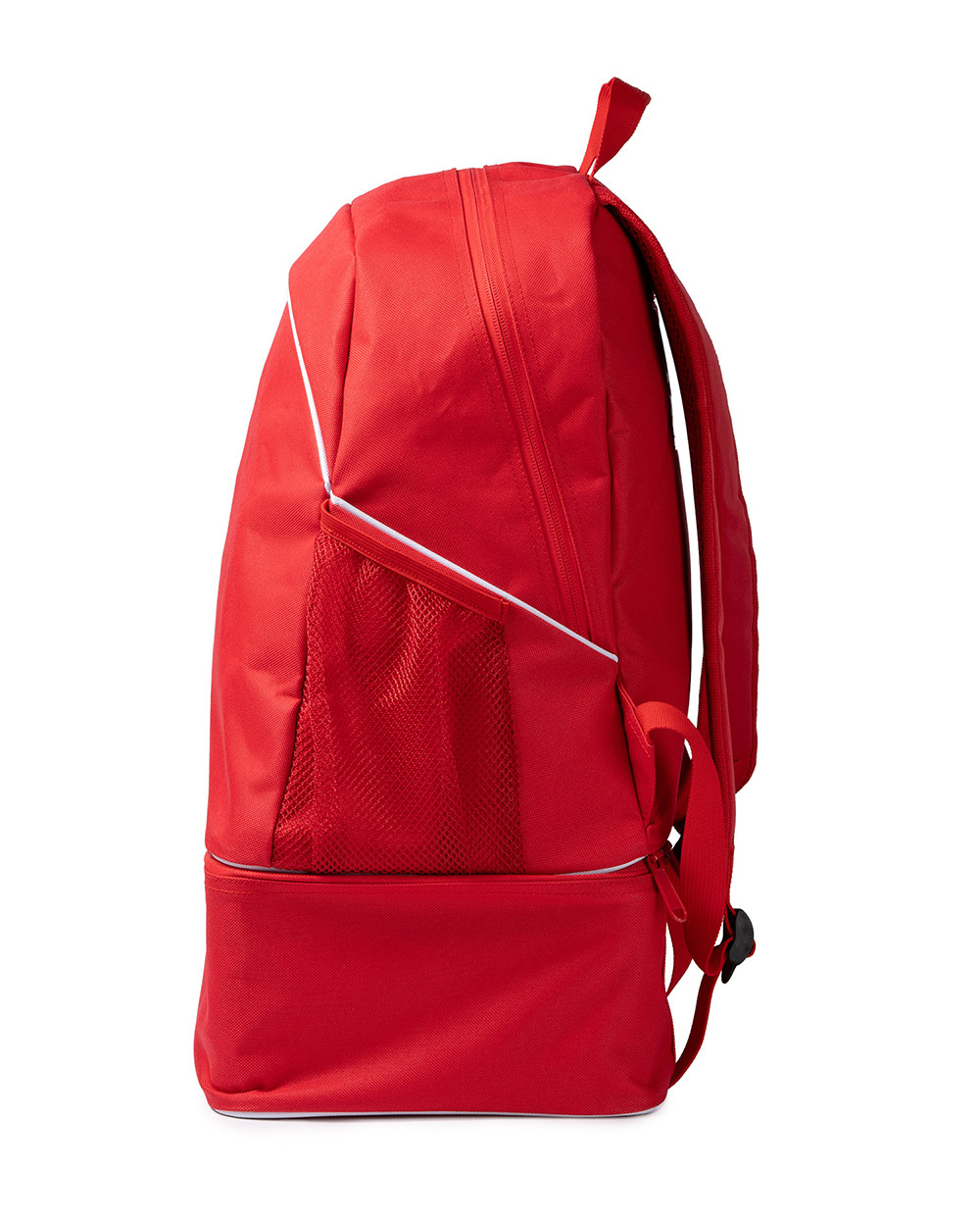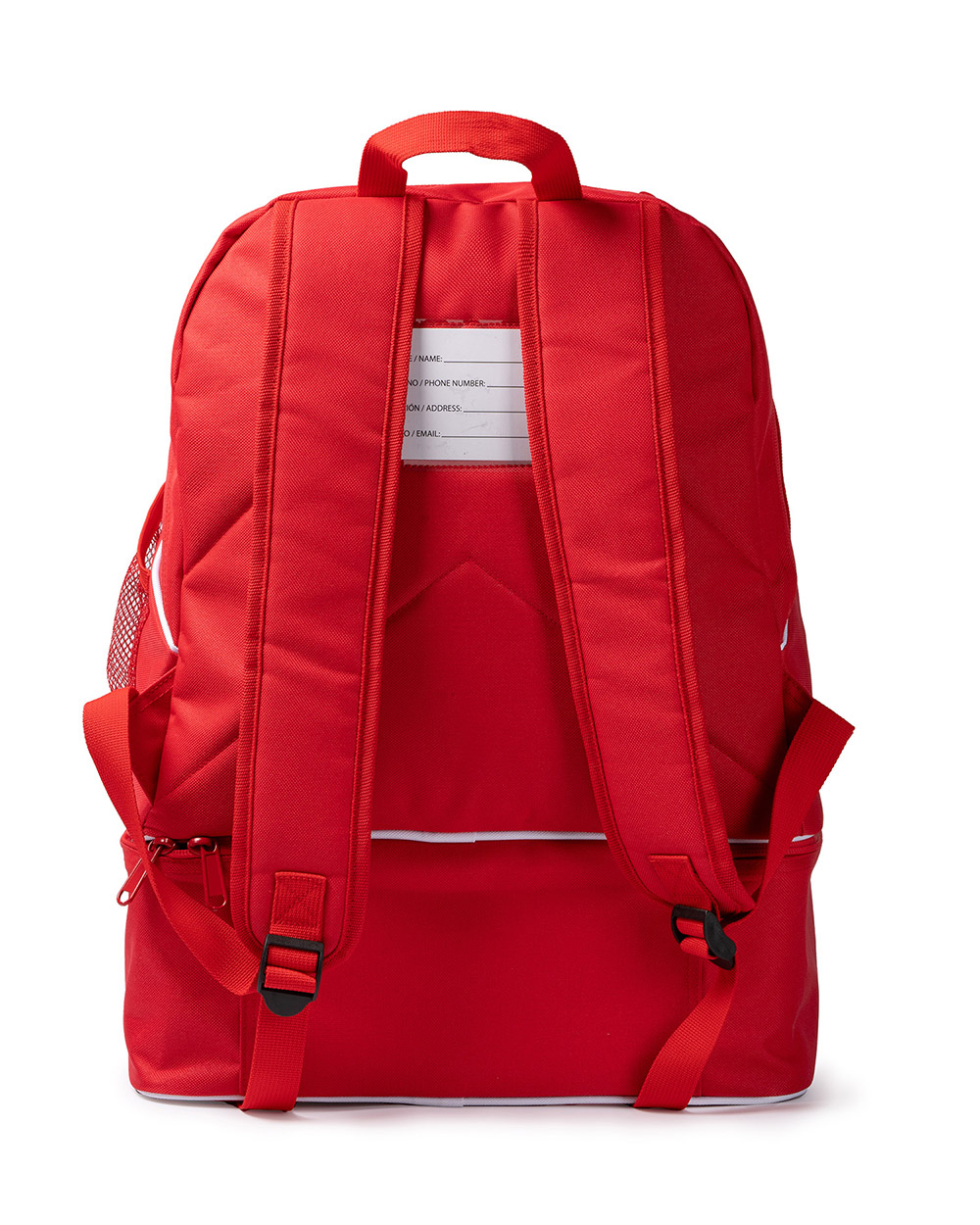 Mochila deportiva con cajón zapatillero rígido. Compartimento principal con cremallera y doble tirador. Bolsillo interior en tejido de forro con cremallera. Espalda y asas acolchadas. Tarjetero de plástico para información. Capacidad de 35L.