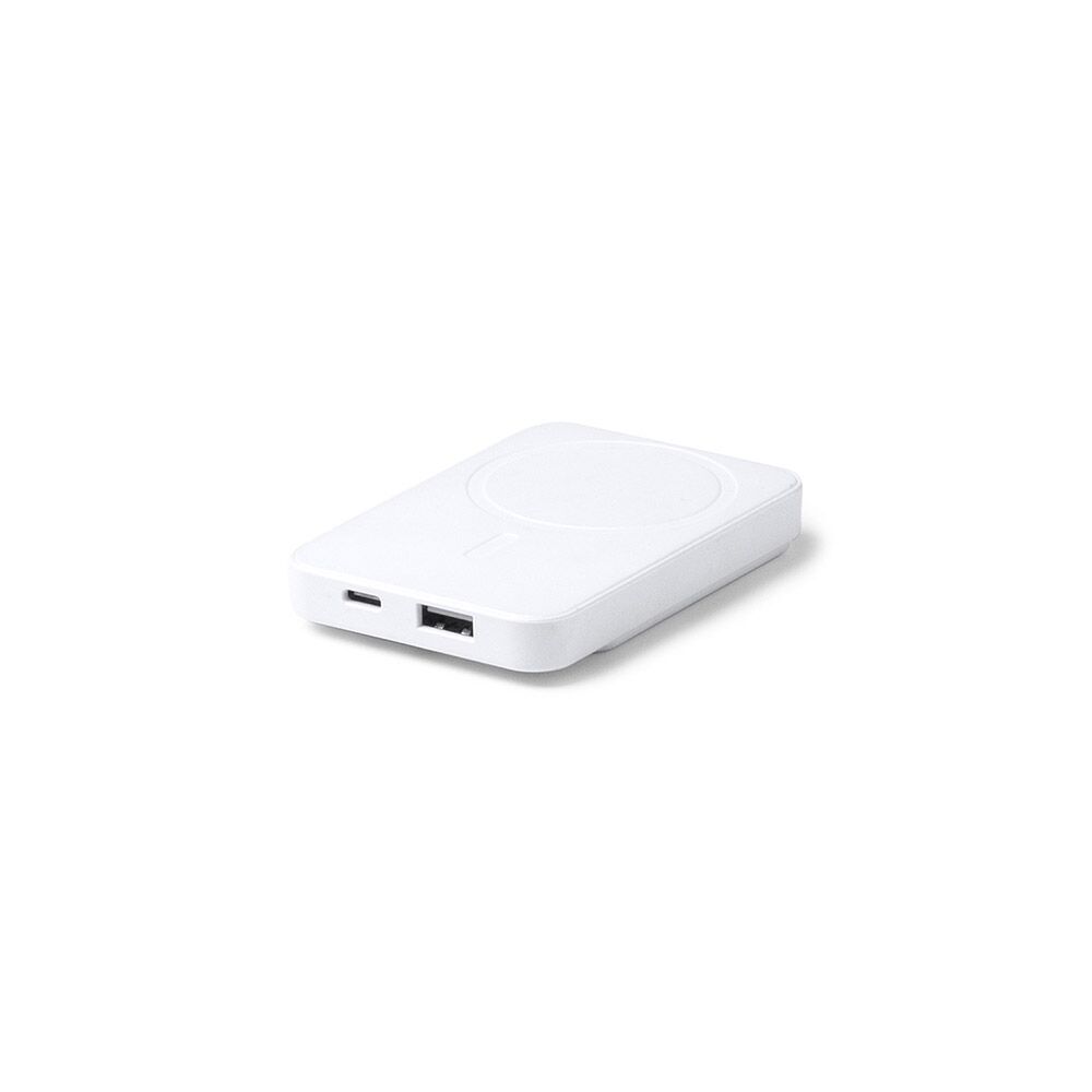 Batería externa realizada con cuerpo de bambú y ABS reciclado. Capacidad 5000 mAh con función magnética de 15W. Pantalla led que indica porcentaje de batería. Incluye anillo accesorio adhesivo.