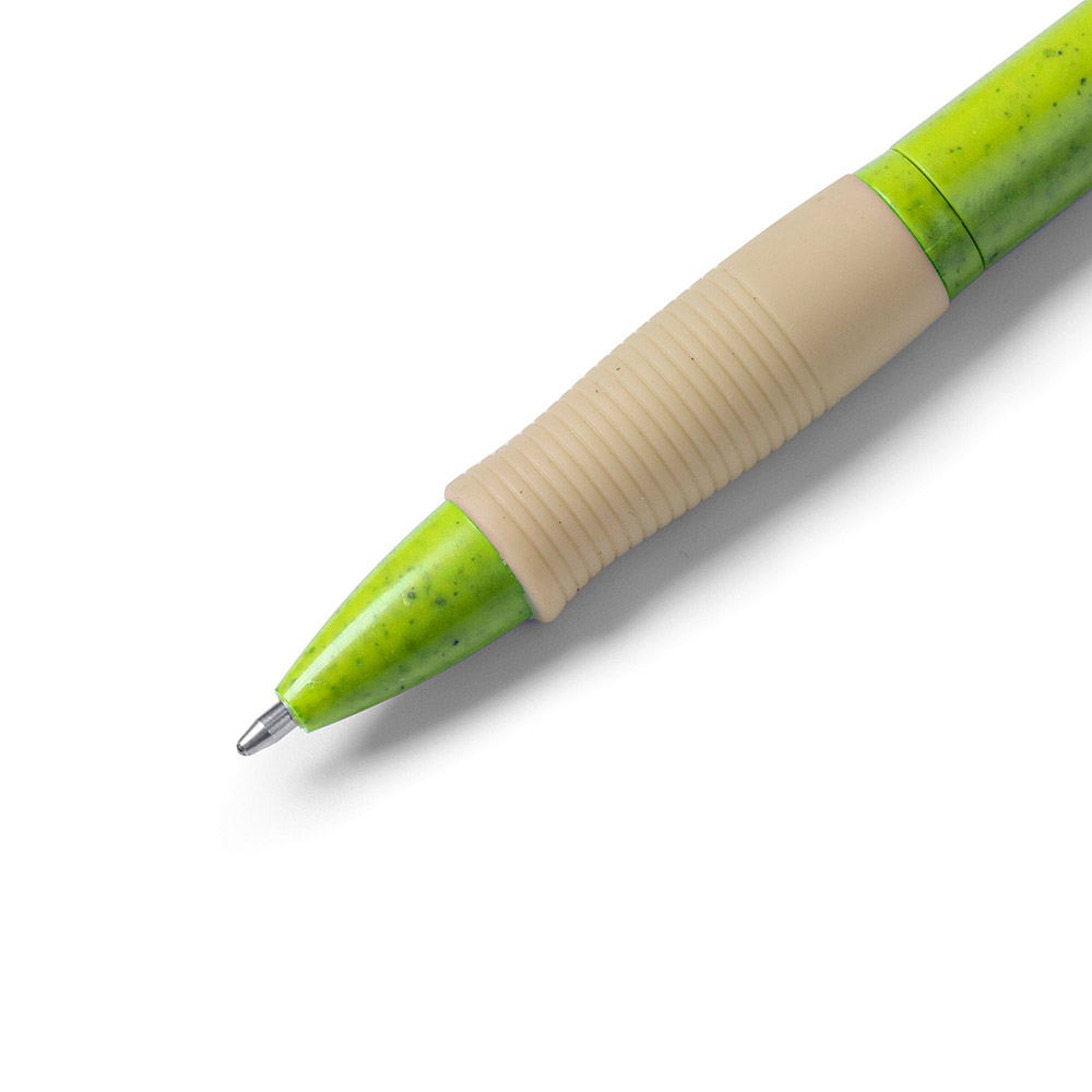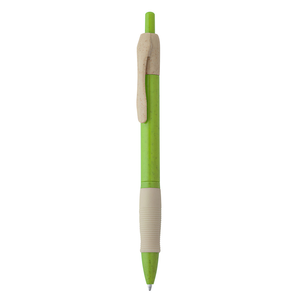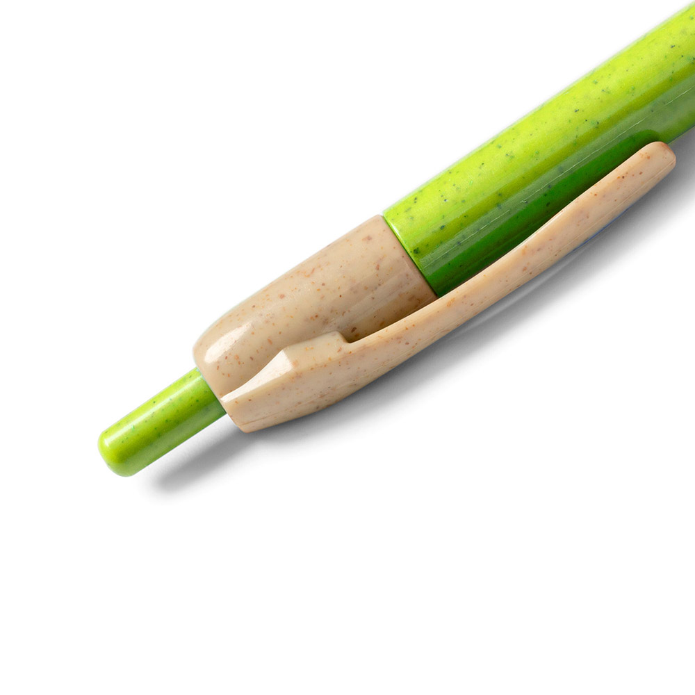 Bolígrafo pulsador de fibra de trigo y ABS con cómoda empuñadura. Tinta azul.