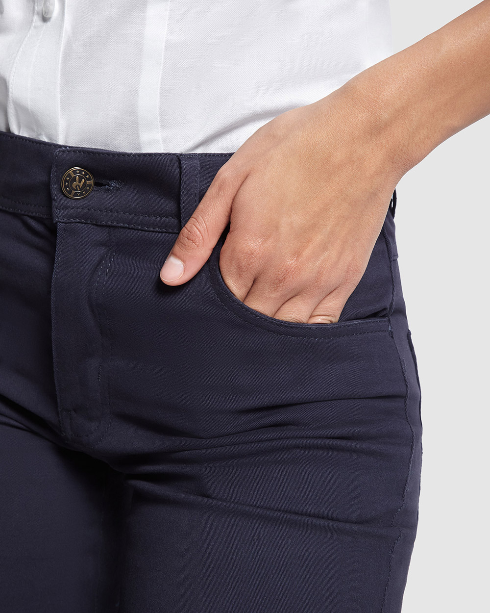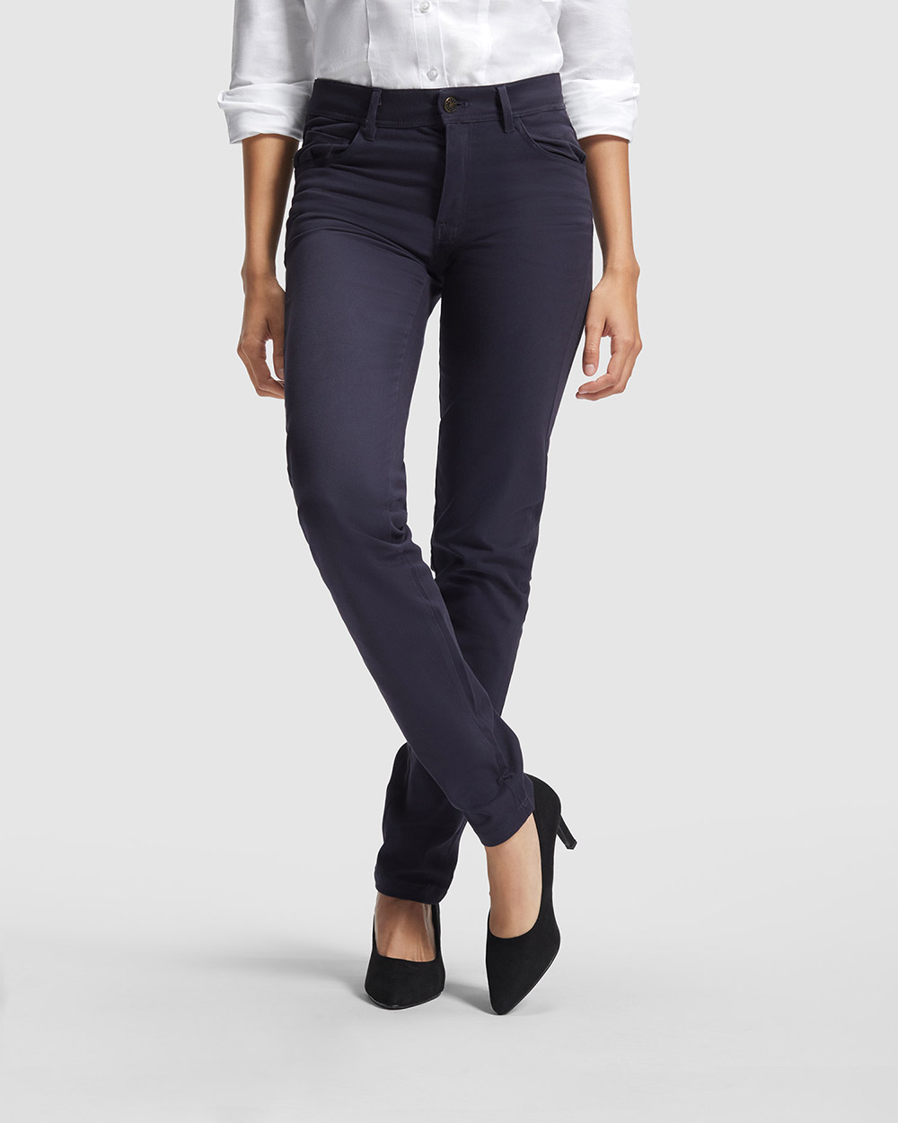 Pantalón largo de mujer entallado con tejido resistente y confortable.