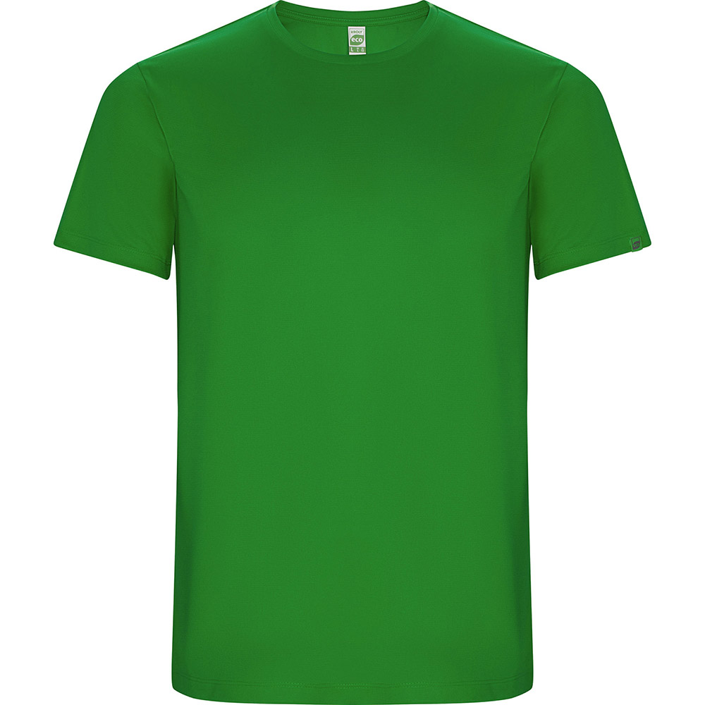Camiseta técnica de manga corta con tejido de poliéster Reciclado CONTROL DRY. Cuello redondo con cubrecosturas a tono. Etiqueta identificativa con logo ECO en manga. Embolsado en material reciclado.