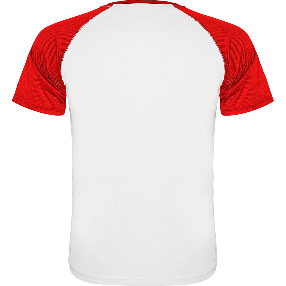 Camiseta deportiva de manga corta estilo ranglan en contraste. Cuello redondo en contraste con cubrecosturas de refuerzo.