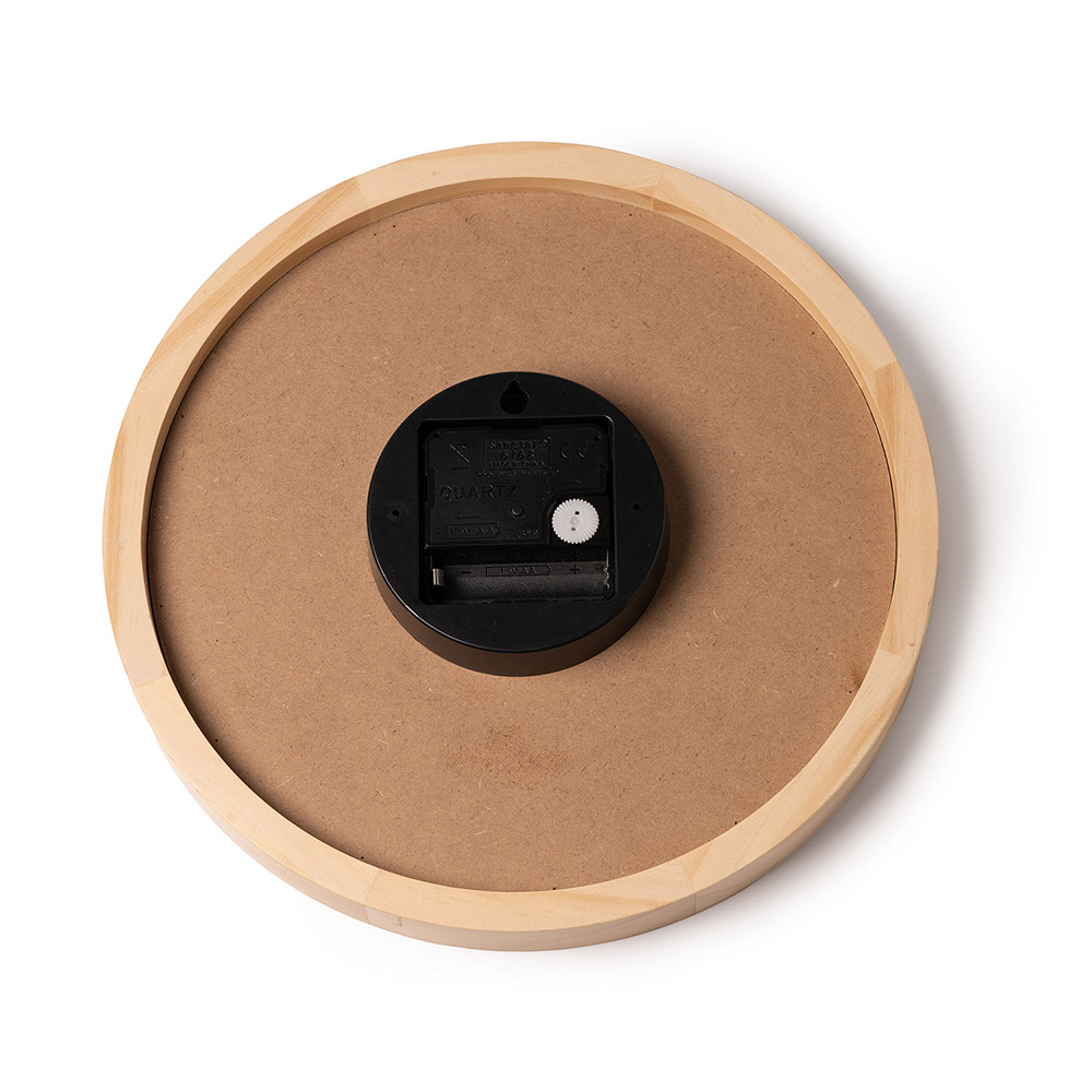 Reloj de pared con diseño vintage realizado en bambú con números y agujas en color negro. Funciona con 1 pila AA, no incluida.