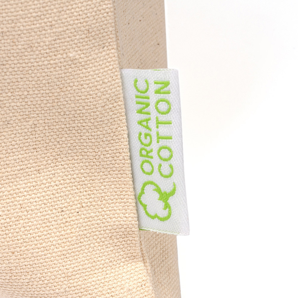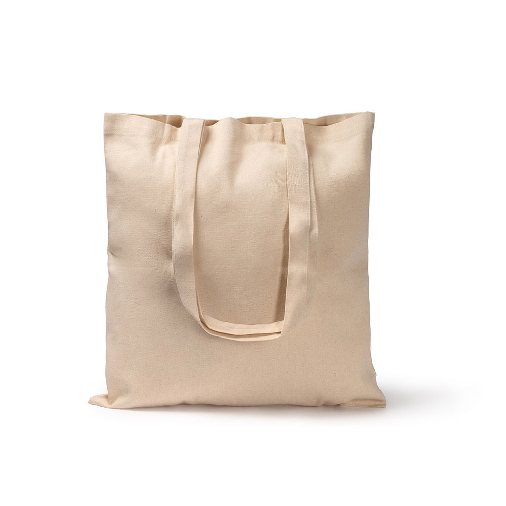 Bolsa 100% algodón orgánico de 220 g/m² en acabado natural. Asas de 70 cm.