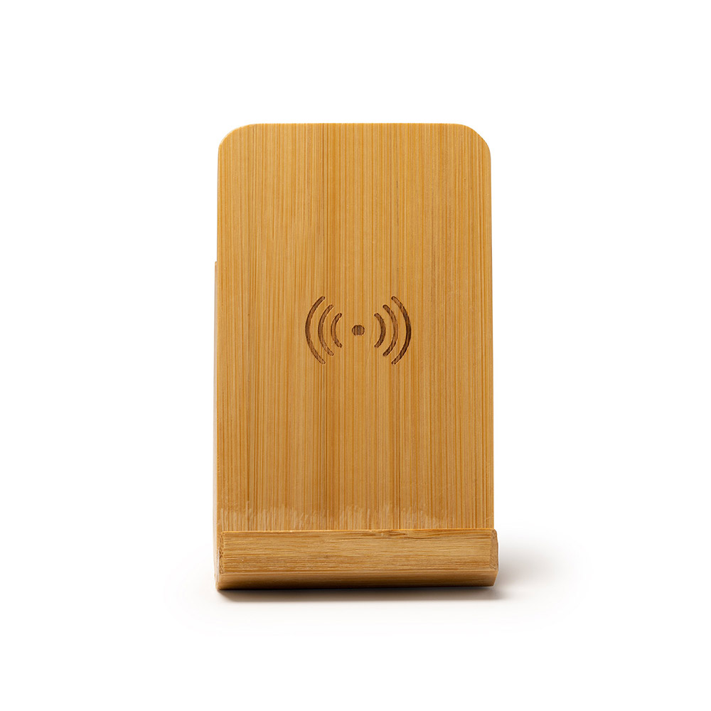 Lapicero multifunción realizado en bambú con superficie vertical de carga inalámbrica con potencia de salida de 10W.
