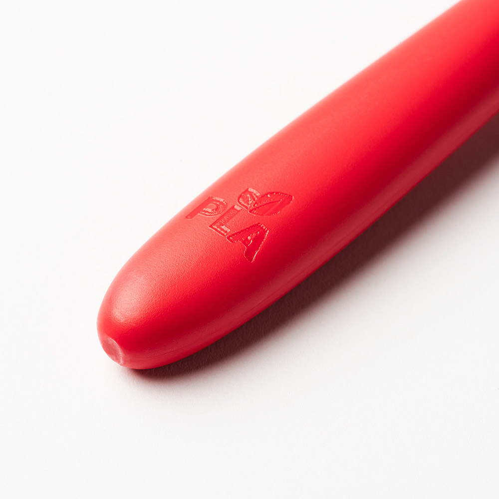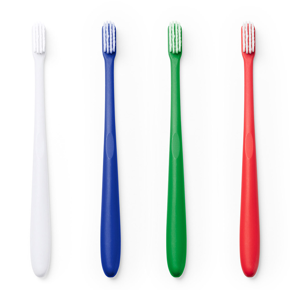 Cepillo de dientes con cuerpo de PLA. Cerdas blancas de dureza suave.