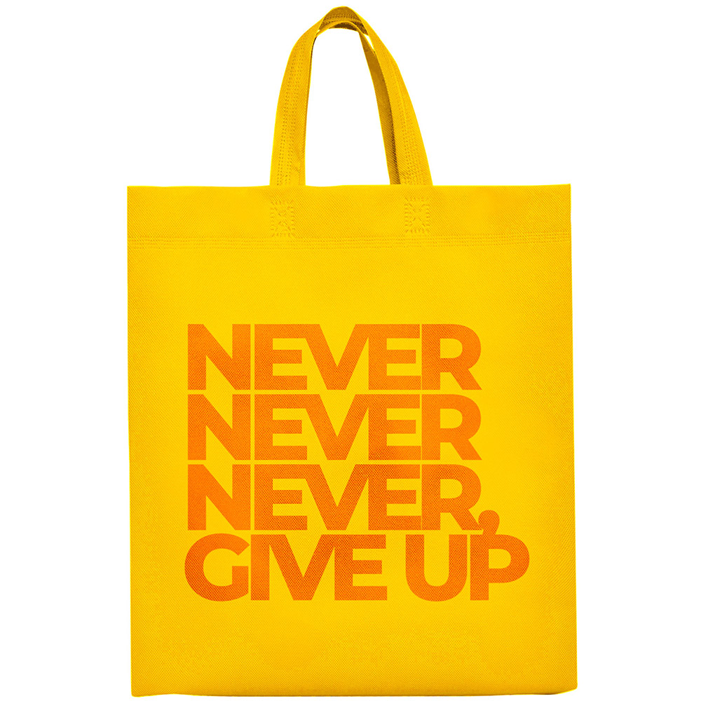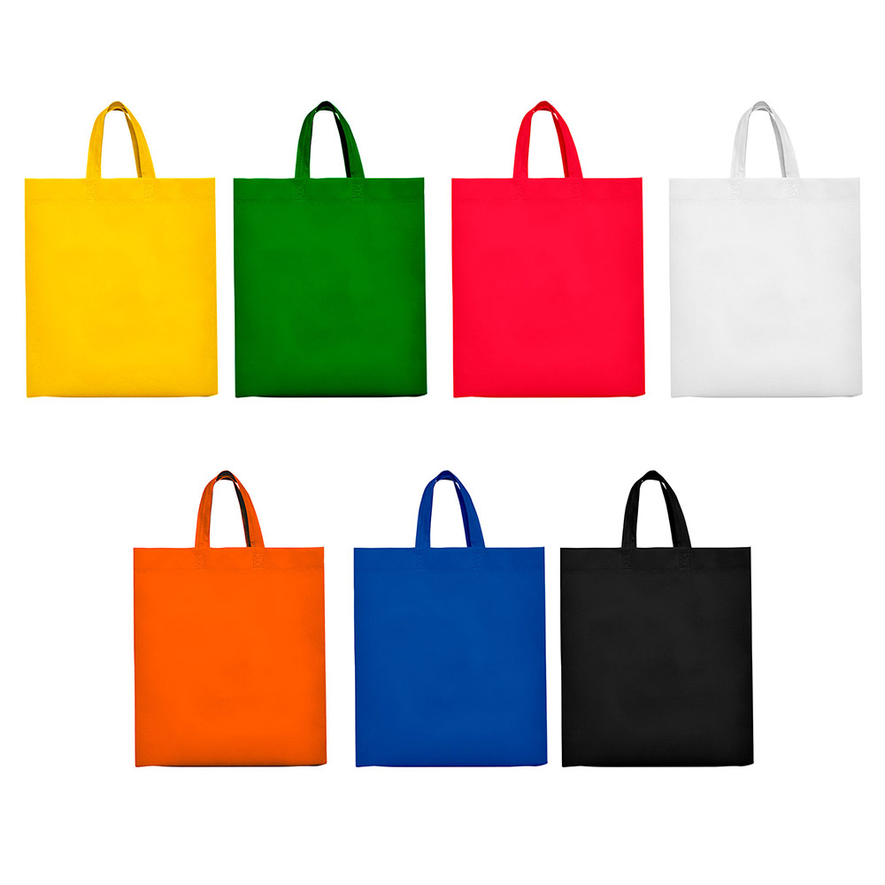 Bolsa termosellada con fuelle en los laterales y en la base, fabricada en tejido non-woven (no tejido), con asa corta de cinta en el mismo color.