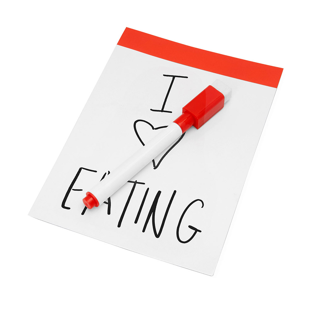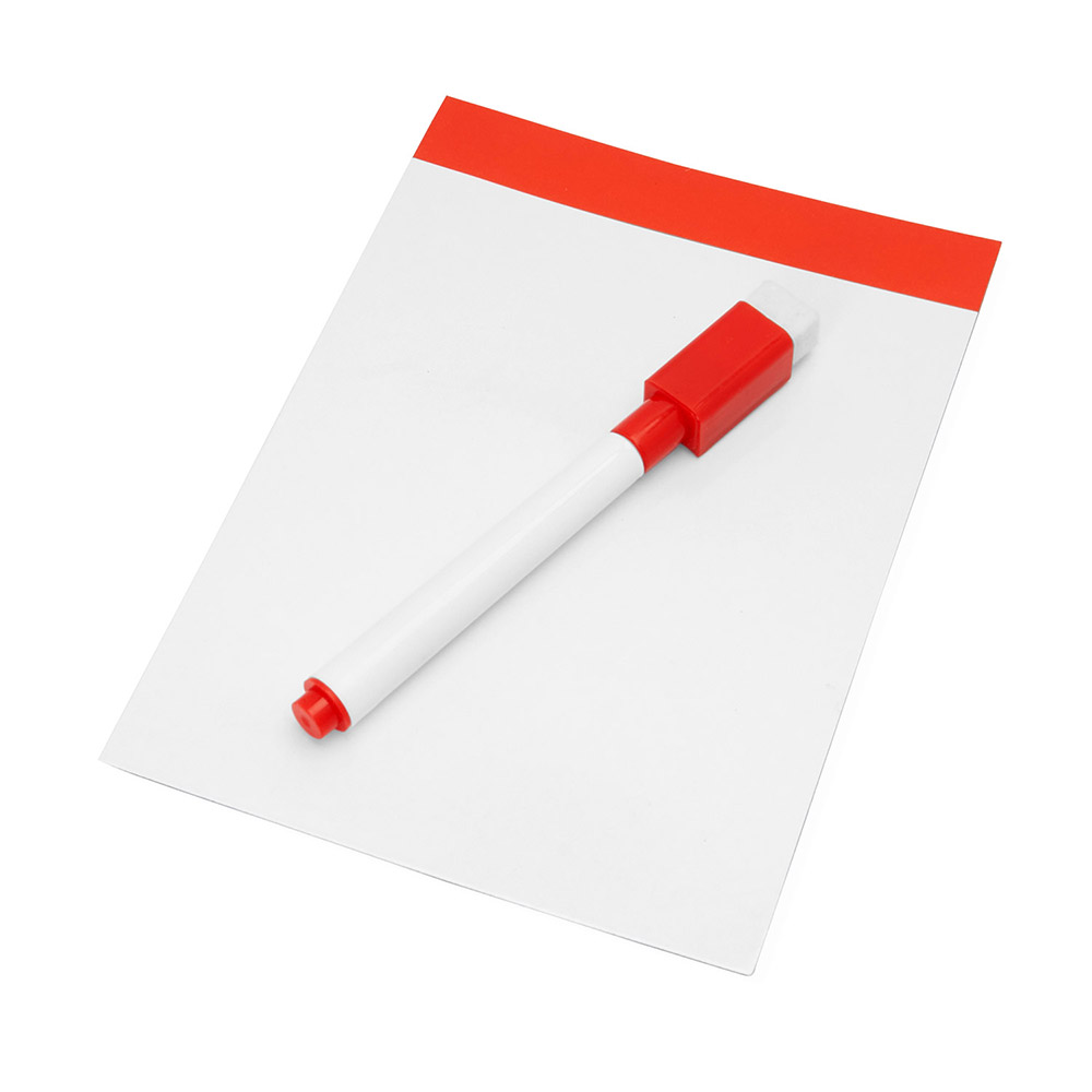 Pizarra y rotulador magnéticos en variados colores. Rotulador tinta negra con borrador incluido.