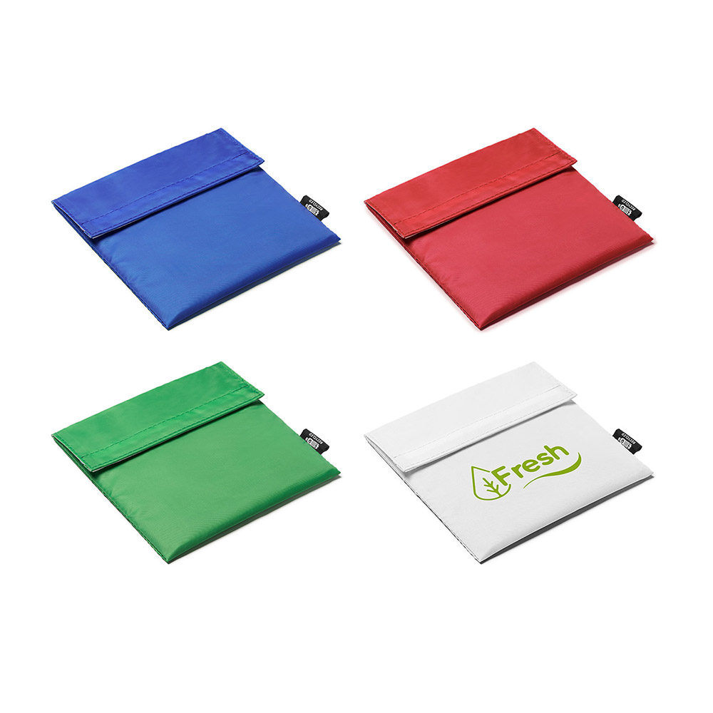 Porta Sandwich reutilizable realizado en poliéster reciclado RPET con interior isotérmico de PEVA. Cierre de velcro y fácil de limpiar