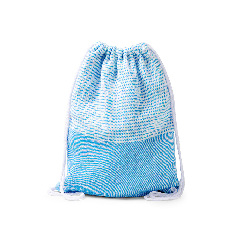 Mochila pareo realizada en algodón reciclado 180 g/m². Bolsillo especial para convertirlo en mochila de cuerdas.