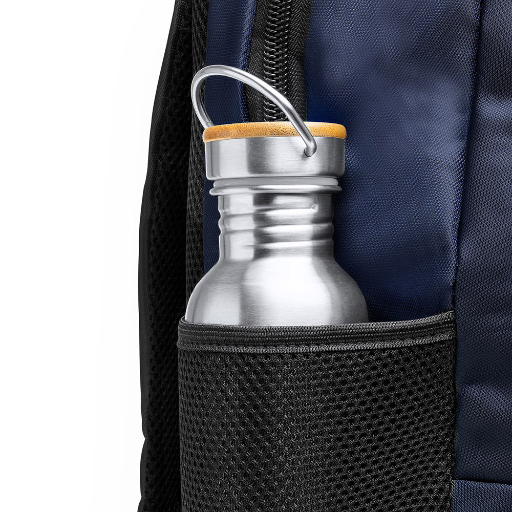 Mochila realizada en nylon 600D. Tiras y espalda acolchadas que harán de manera más cómoda el transporte de la misma. Incluye compartimento interior acolchado ideal para portátil. Mochila idónea de uso diario en la oficina o bien para realizar viajes.