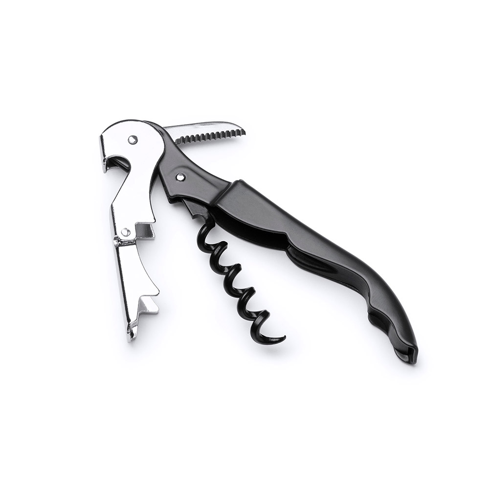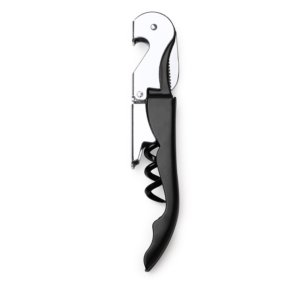 Sacacorchos de estilo clásico en acero inoxidable con dos posiciones.
