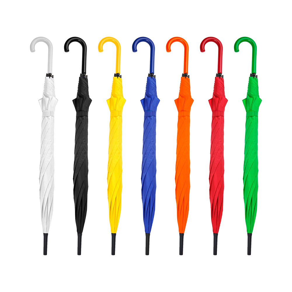 Paraguas con tela y mango del mismo color. Varillas y terminaciones en negro. Cierre con velcro y apertura automática. Diámetro 105.