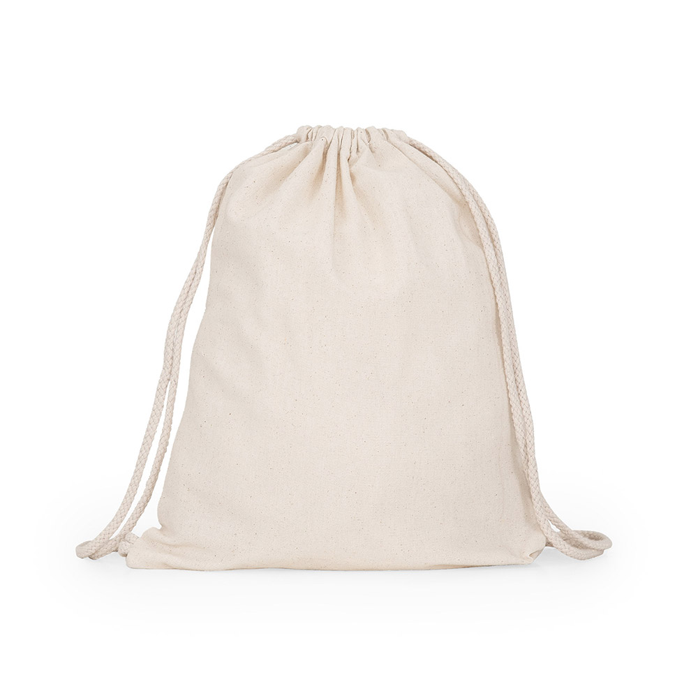 Mochila multiusos de algodón. Cordones de ajuste a la espalda a tono, de 8 mm de grosor.