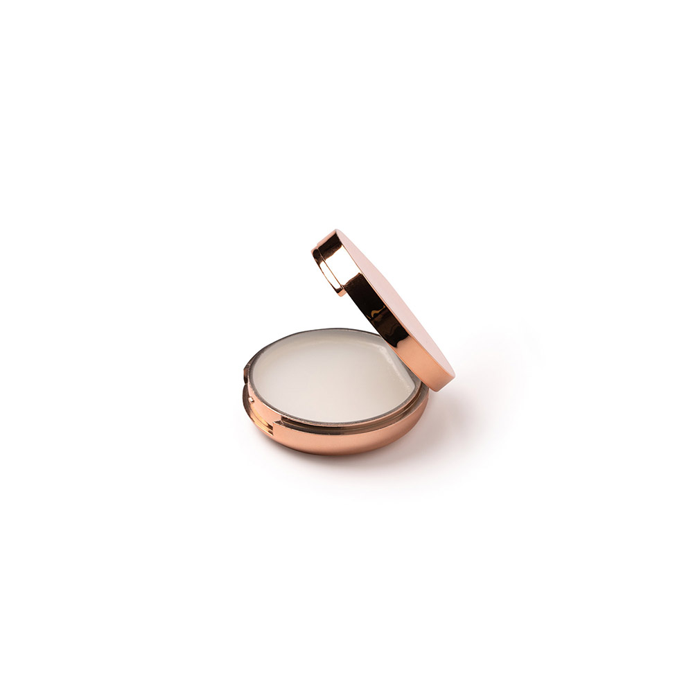 Bálsamo labial presentado en estuche cromado con espejo interior. Protección SPF15.