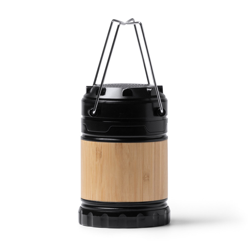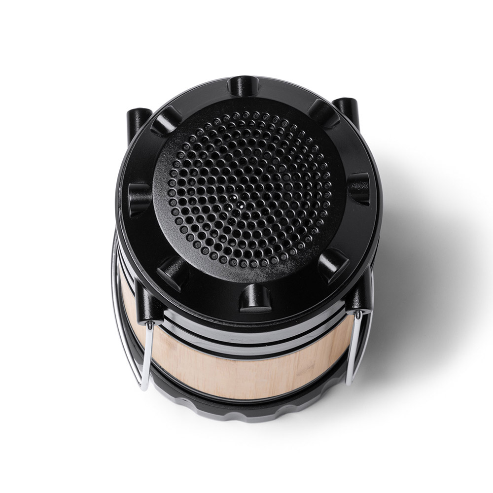 Altavoz inalámbrico con función lámpara, con cuerpo de bambú.