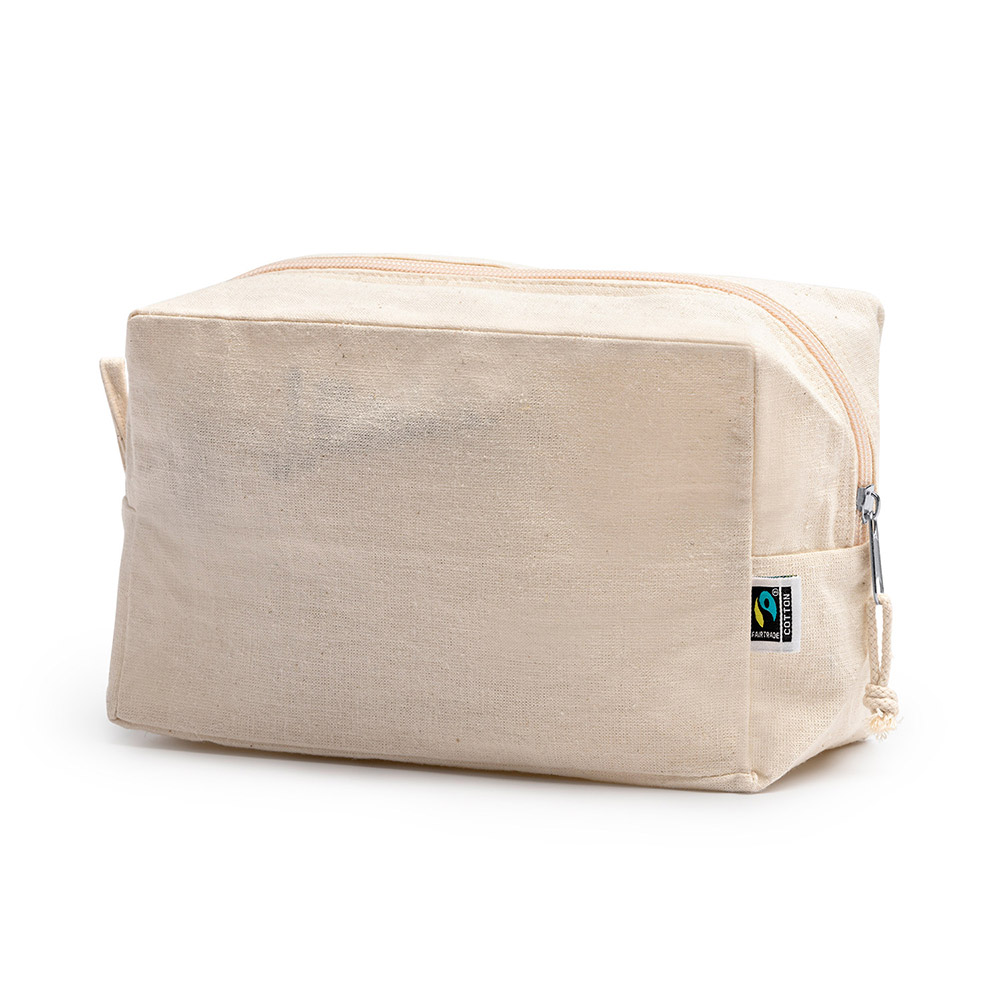 Neceser multiusos 100% algodón Fairtrade de 180 g/m². Bolsillo principal con cremallera y tirador a juego.